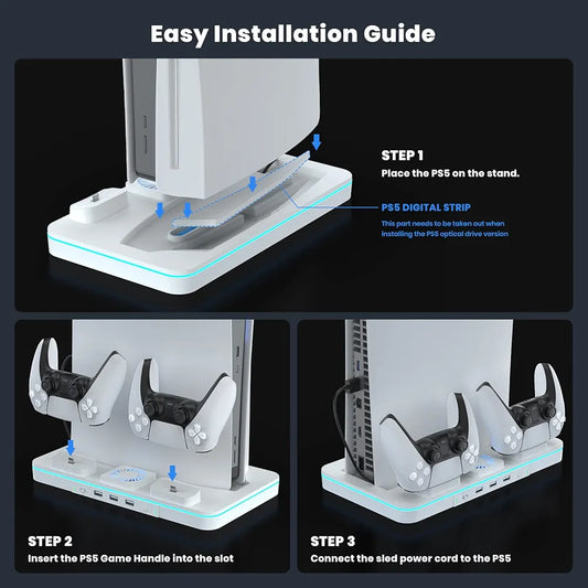 '-Soporte de refrigeración mejorado para PS5 con cargador para mando