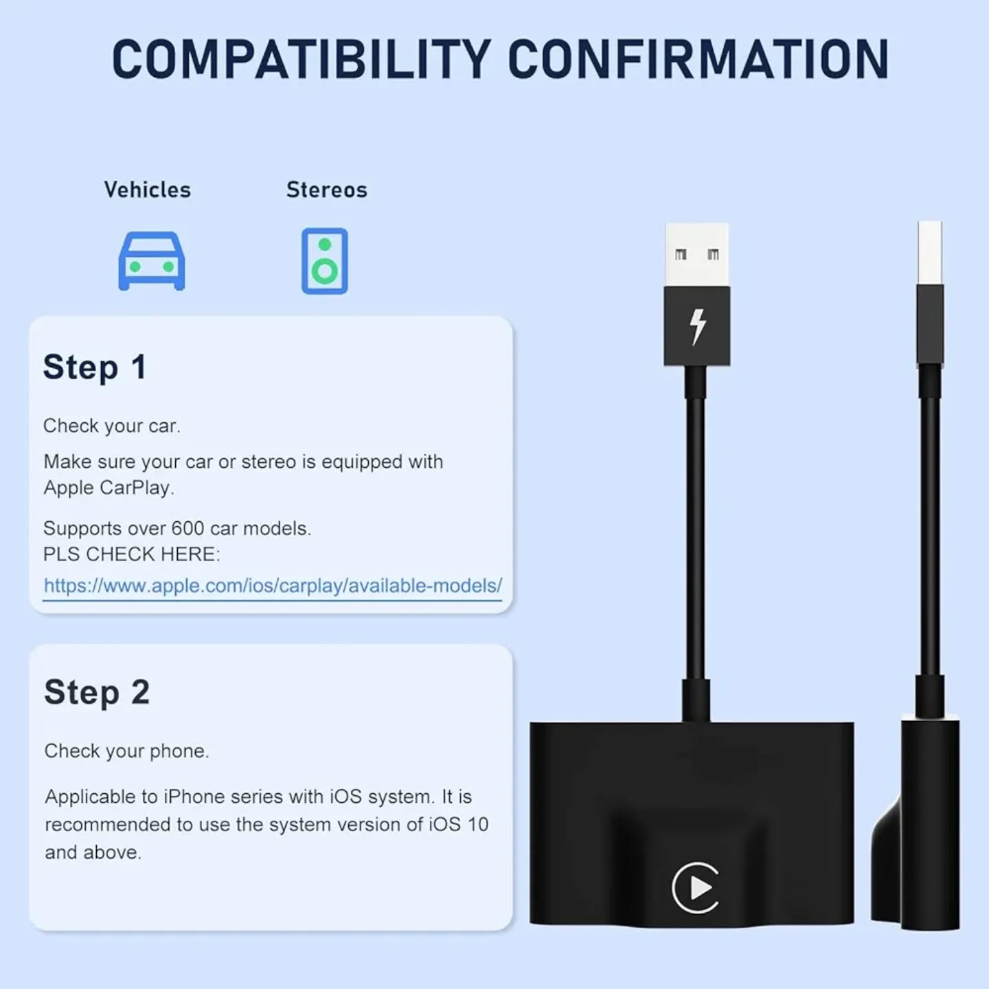 Adaptador inalámbrico CarPlay para CarPlay cableado de fábrica Adaptador CarPlay inalámbrico Plug & Play Convierte el cableado en inalámbrico Uso rápido y sencillo Compatible con automóviles a partir de 2015 y iPhone iOS 10+