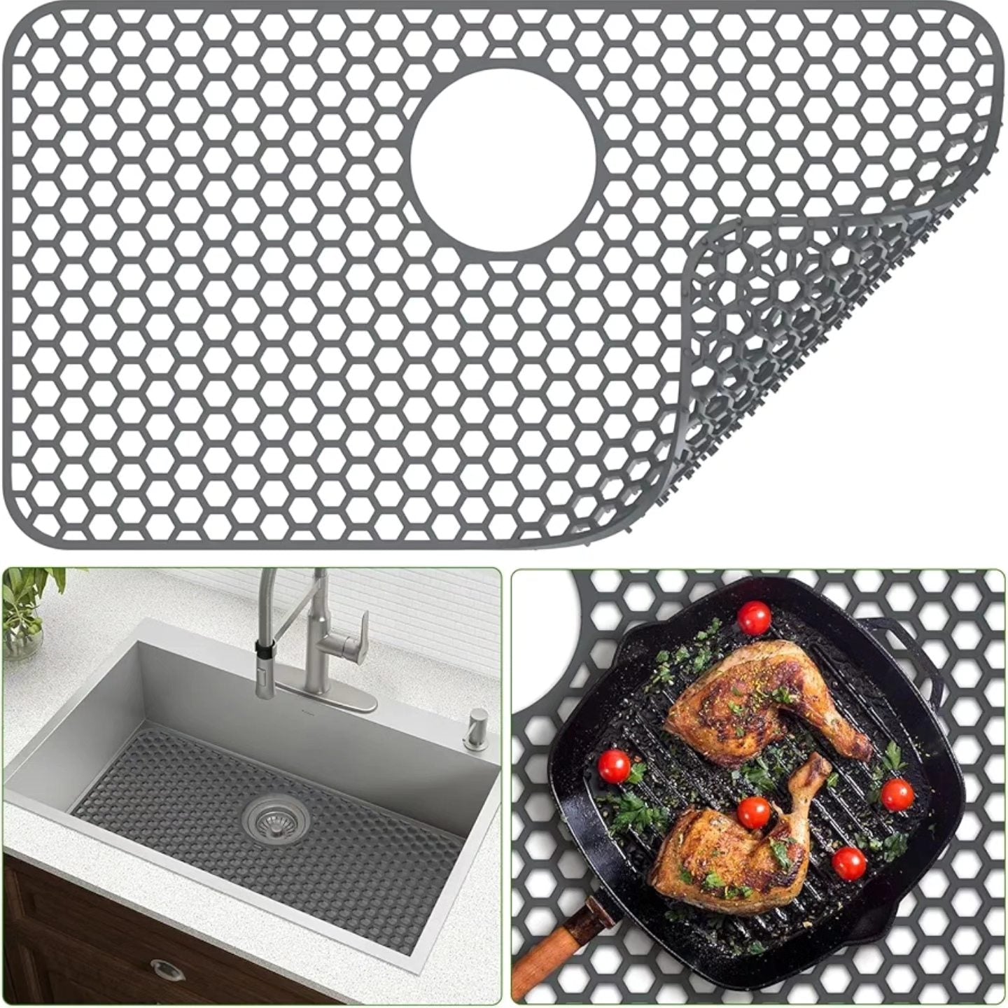 Alfombrilla De Silicona Para Fregadero, Protector De Fregadero Plegable Antideslizante, Resistente Al Calor Para Encimeras De Cocina, Accesorios Para Fregadero 75.5 x 40 cm. diámetro de desagüe 12 cm