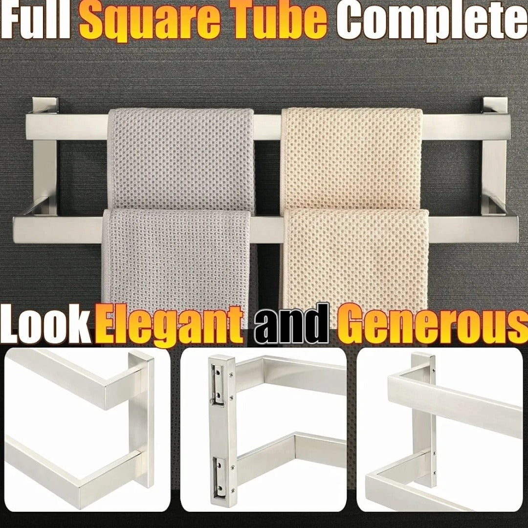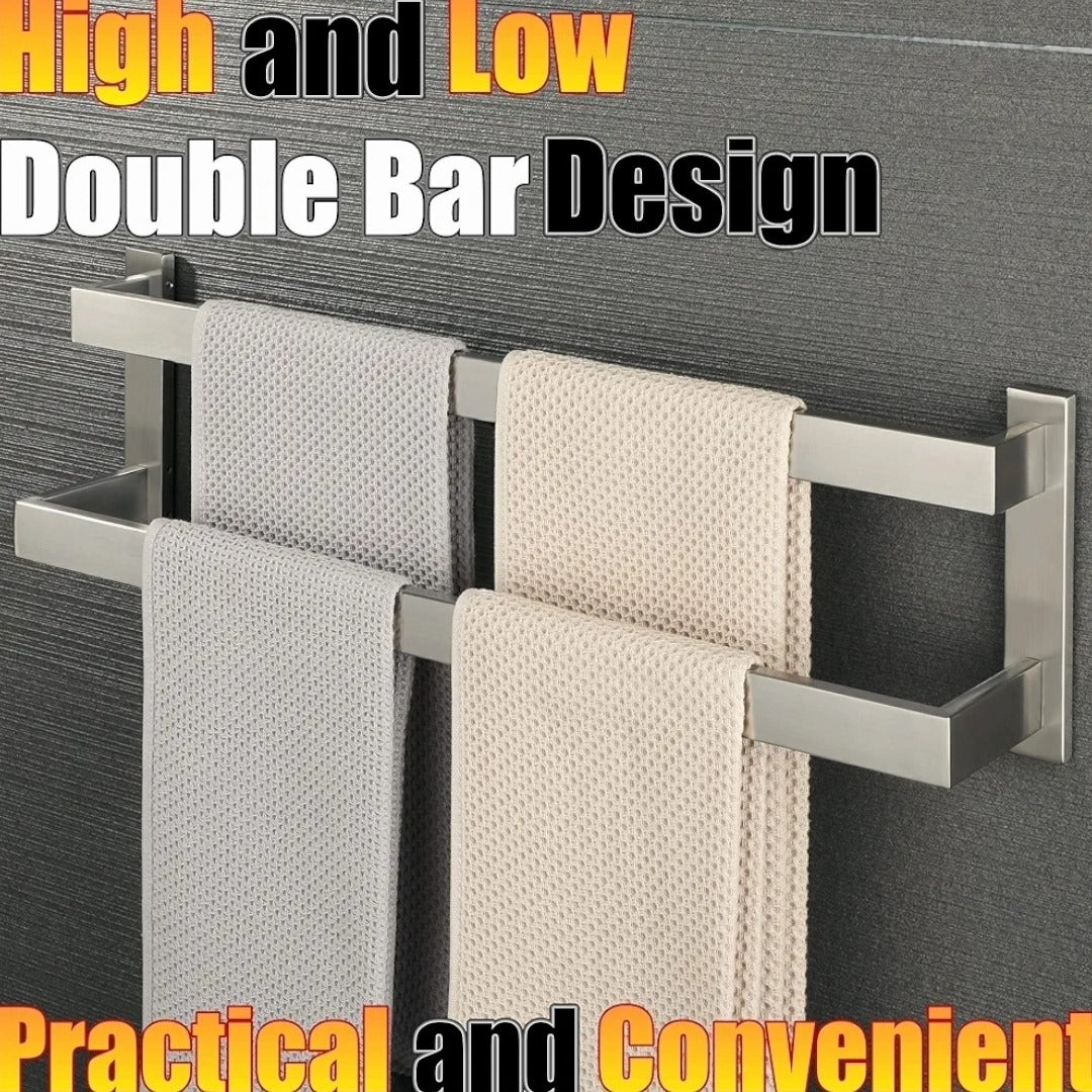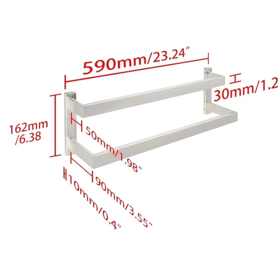 Alise GOY002-LS - Toallero doble para baño, soporte de pared para toallas de baño, toallero de acero inoxidable SUS304, níquel cepillado de 23.2 pulgadas