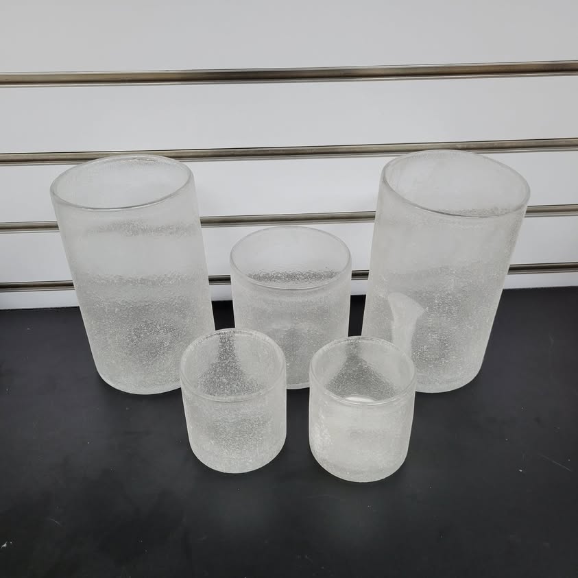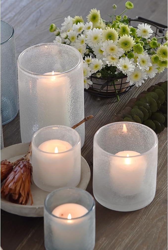 ARIAMOTION Juego de 5 portavelas de huracán, 5 pilares de decoración de vidrio, floreros votivos, floreros de flores, arenoso, transparente, moderno, centro de mesa, fiesta, playa, casa.