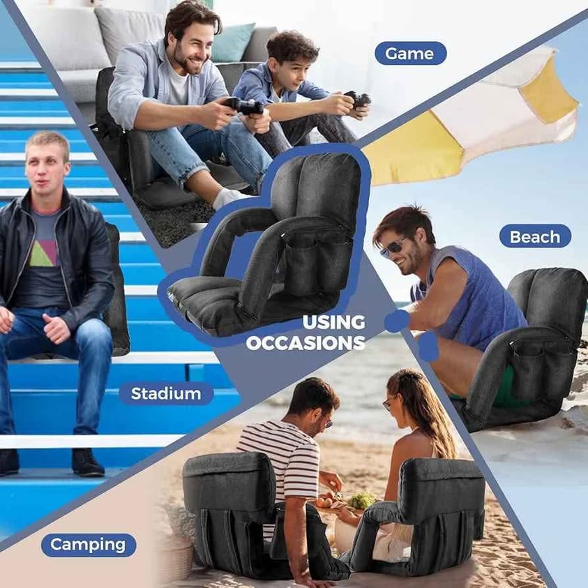 Asientos de estadio anchos para gradas con soporte de espalda, extra gruesos, asientos de estadio de tamaño grande con respaldo y cojín ancho, silla de estadio de 6 posiciones reclinables