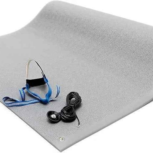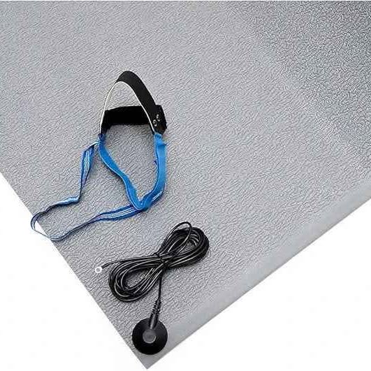 Bertech Kit de alfombrillas ESD para suelo (fabricado en Estados Unidos), 3 pies de ancho x 5 pies de largo x 0.375 pulgadas de grosor, antifatiga, gris, incluye un cable de tierra para el talón y conexión a tierra, cumple con RoHS y REACH