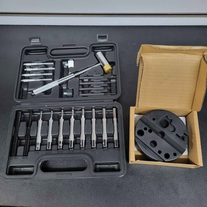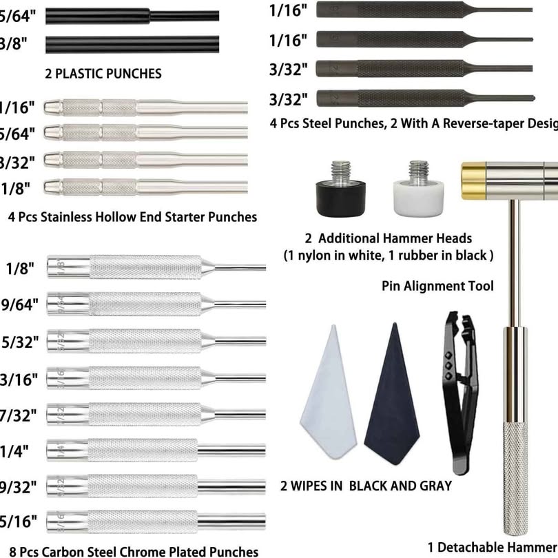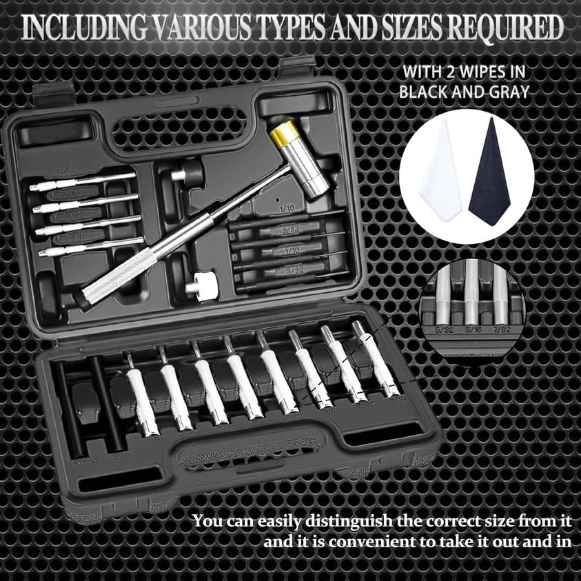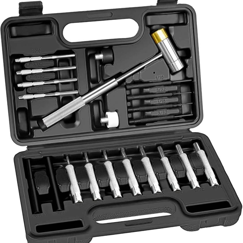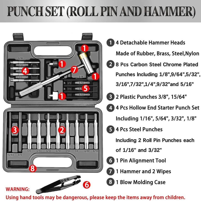 BESTNULE Juego de punzones, perforadores, herramienta de perforación, juego de punzones de rollo, hecho de material metálico de alta calidad que incluye perforadores y martillo.