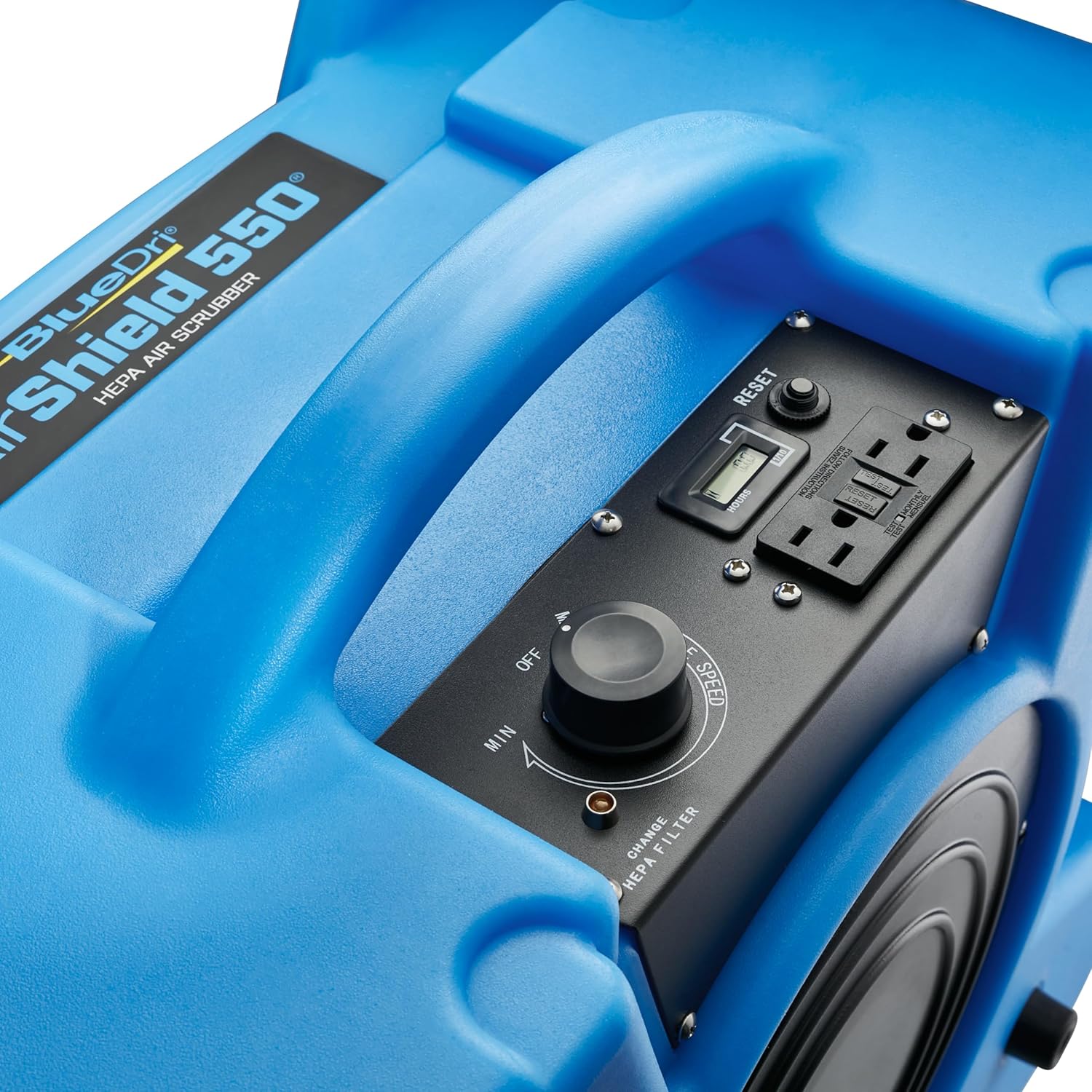 BlueDri AS-550 purificador de aire. El BlueDri Air Shield 550 (AS-550) de uso comercial e industrial. Para pintores, durante la restauración de agua/inundación, construcción, espacios de rastreo y áticos, remodelaciones, pintura, aguas residuales, remediación, restauración de daños por incendio, restauración de daños por agua.