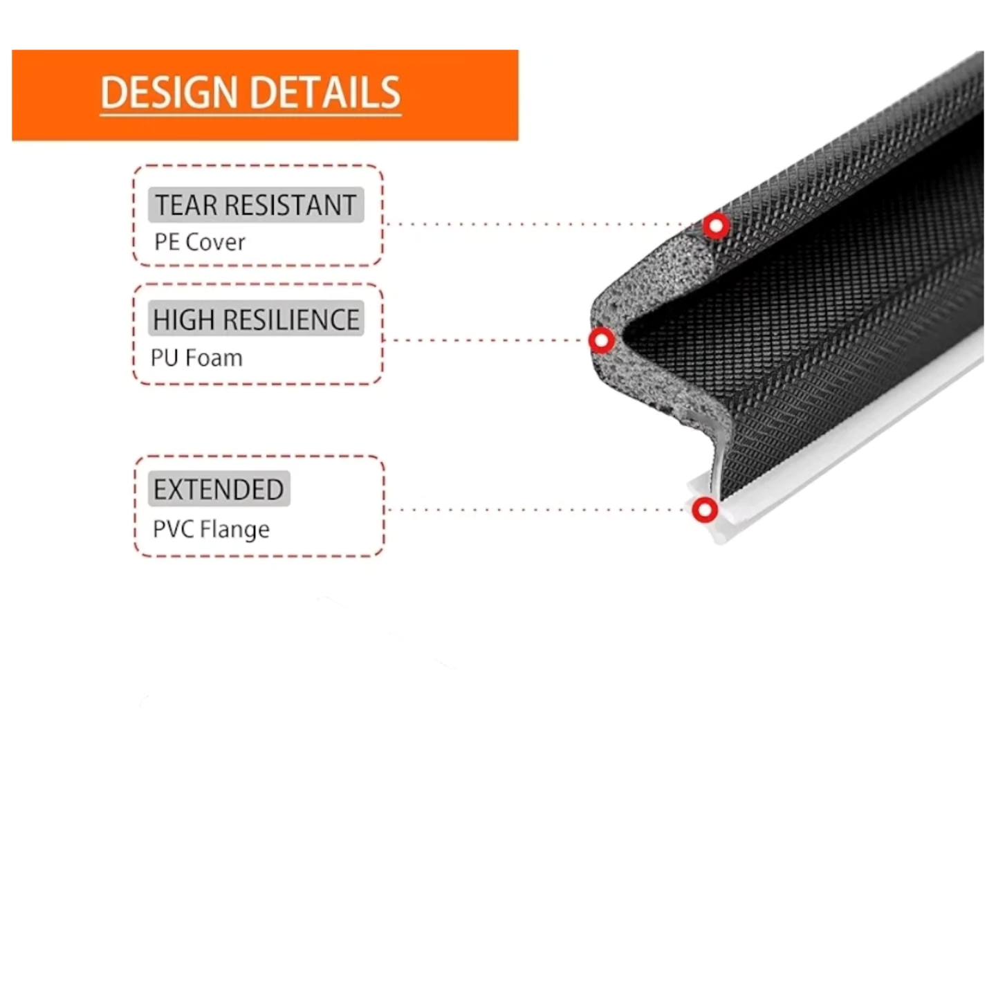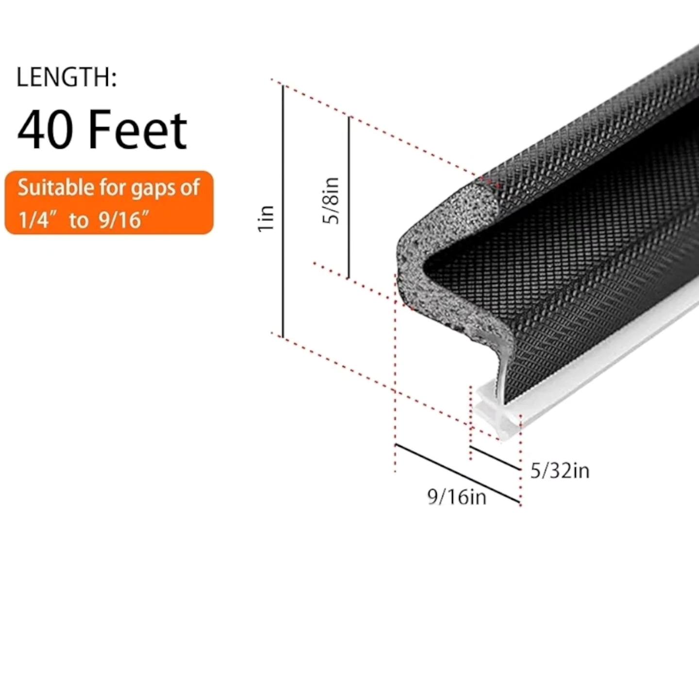 Burlete de 40 pies para puerta, burlete de espuma Q, burlete de sellado de puerta insonorizado en forma de V, fácil instalación (negro).