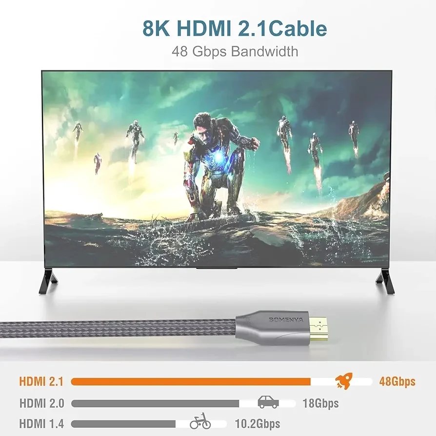 Cable HDMI 8K de 10.4 pies/10.5 ft, 4K @120 Hz/8K a 60 Hz de alta velocidad 60 HZ 48 Gbps cable HDMI trenzado compatible con HDMI 2.1, alta velocidad con Ethernet, Blu-ray/PS5/Xbox Series.