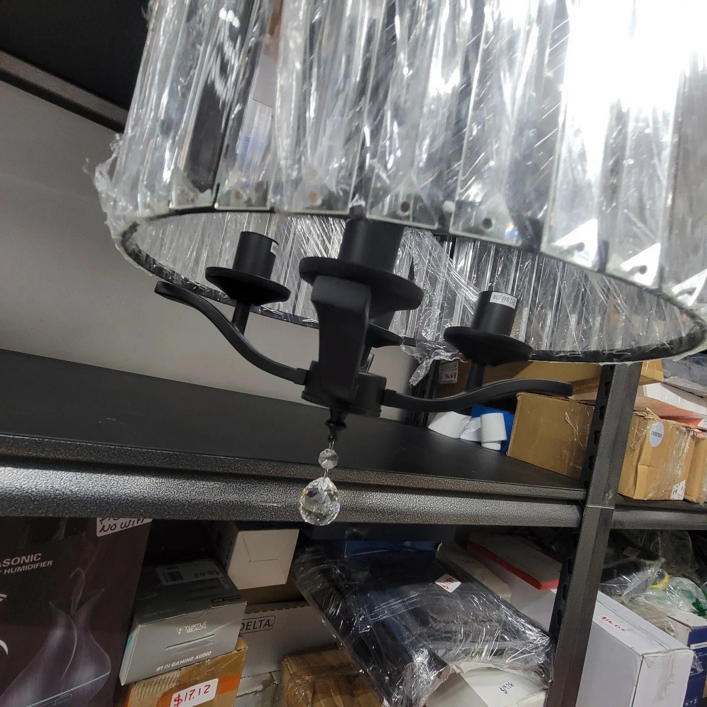 Candelabro moderno de cristal, 4 luces, color negro, semiempotrado, lá...