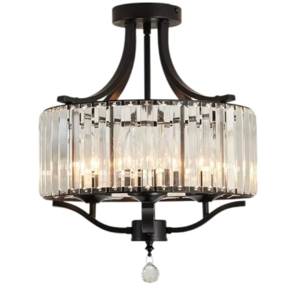 Candelabro moderno de cristal, 4 luces, color negro, semiempotrado, lámpara de techo E12 de metal para comedor, dormitorio, pasillo, entrada, cocina.