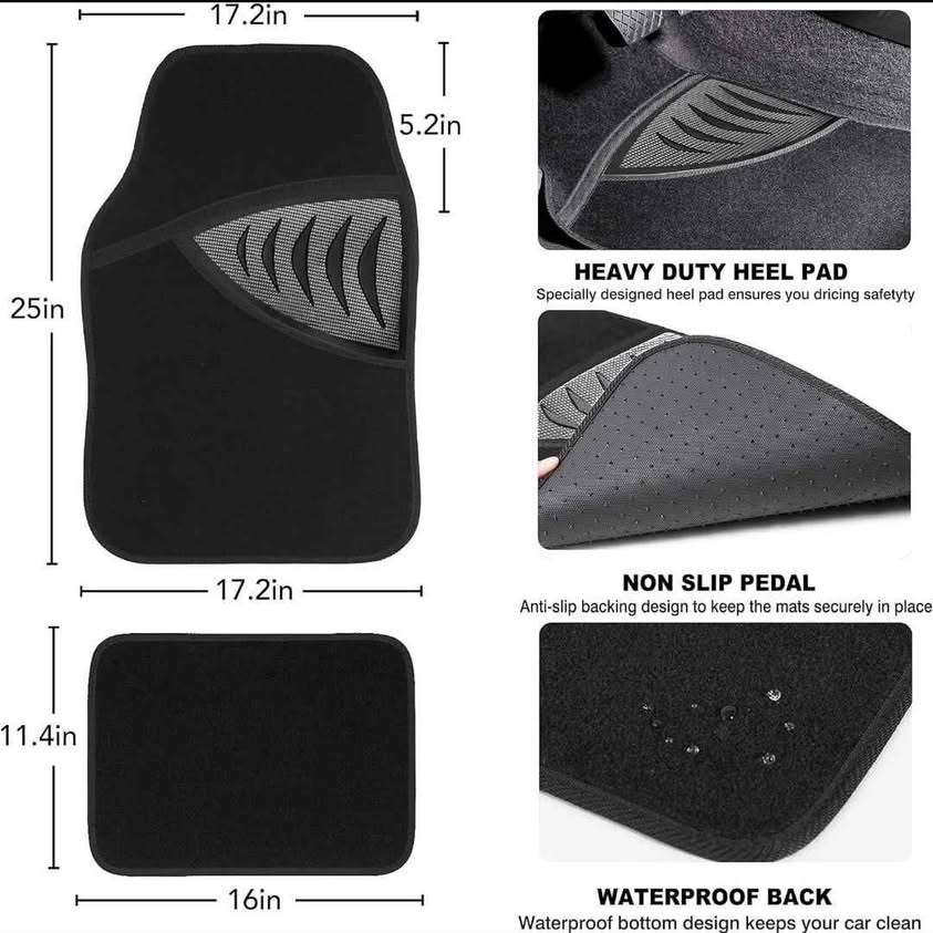 CAR PASS Tapetes impermeables de ajuste universal para automóvil, tapetes de piel sintética para automóvil, tapetes negros con respaldo antideslizante y almohadilla para el talón del conductor.