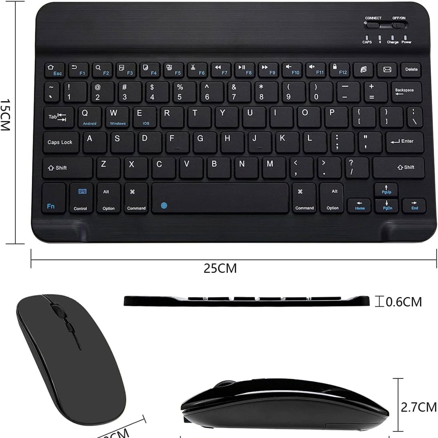 Combo de teclado y mouse Bluetooth ultrafino recargable portátil inalámbrico para Apple iPad iPhone iOS 13 y superior Samsung Tablet Phone Smartphone Android Windows (negro)
