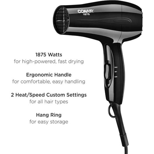 Conair Secador de pelo, secador de pelo mediano de 1875 W.