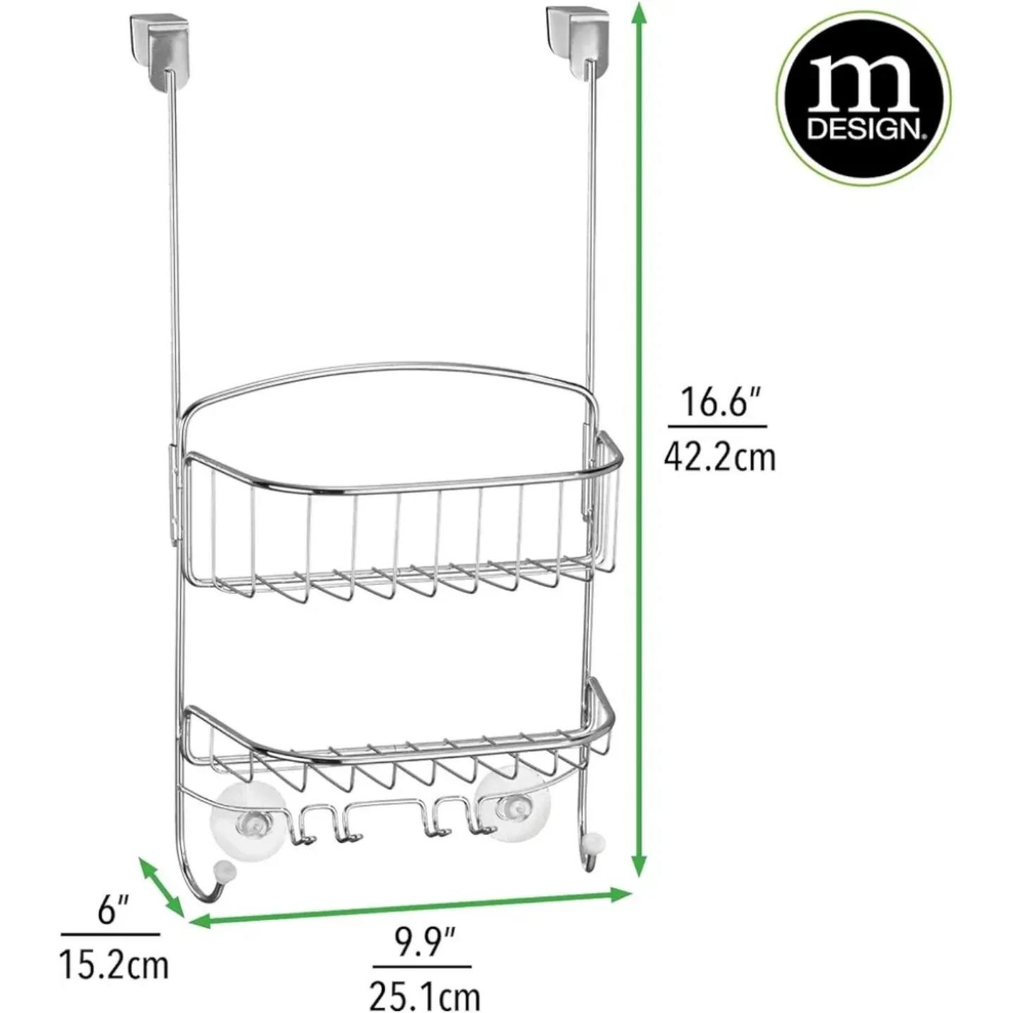 (Cromo/Blanco) - mDesign Organizador de ducha sobre puerta para champú, acondicionador y jabón - Cromo/Blanco