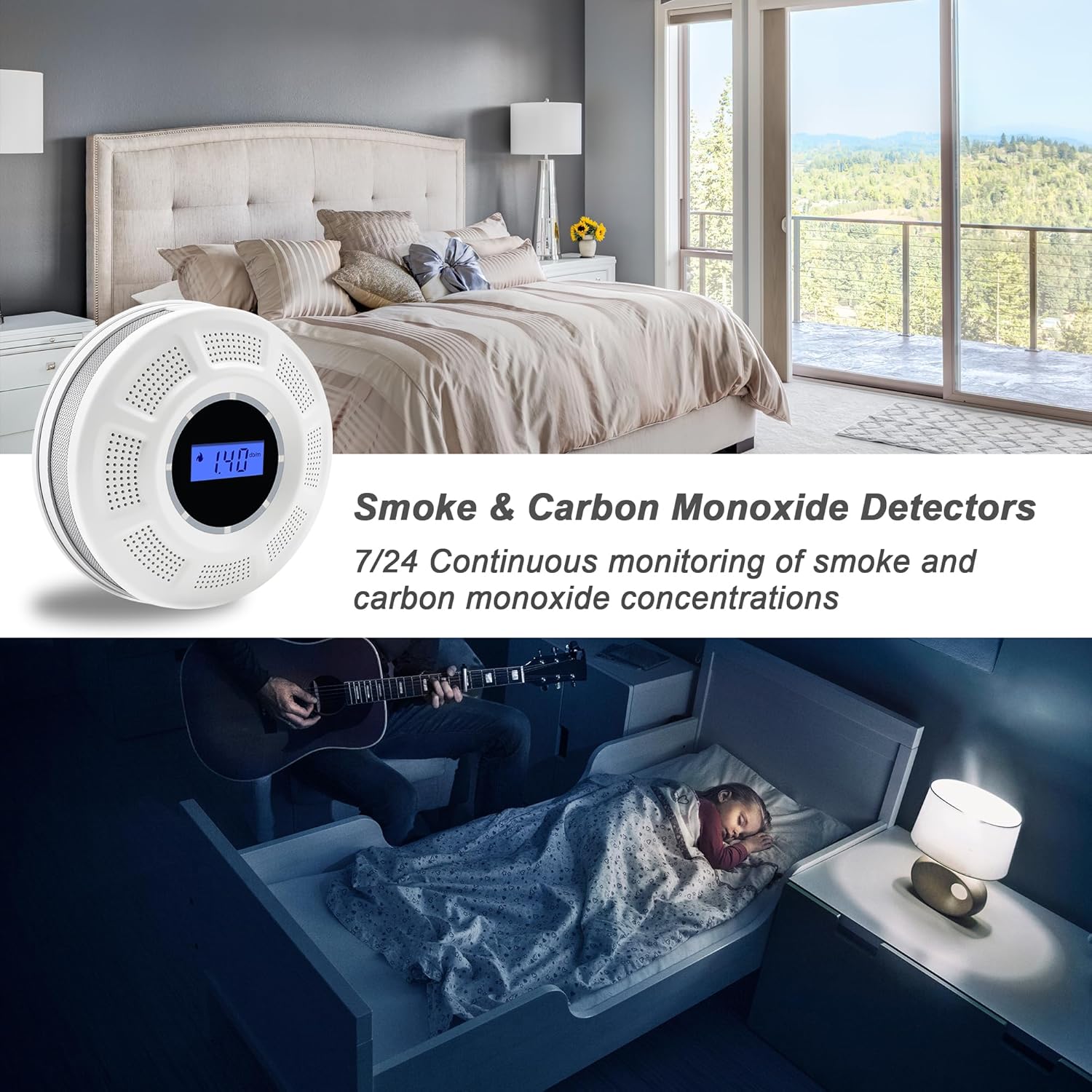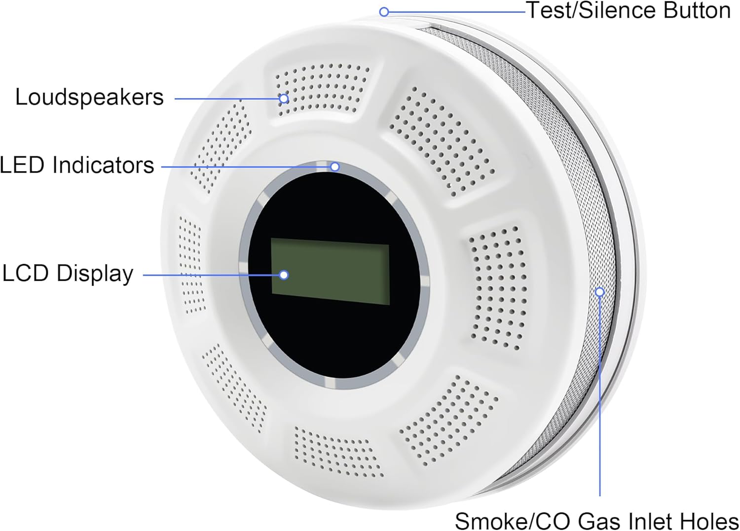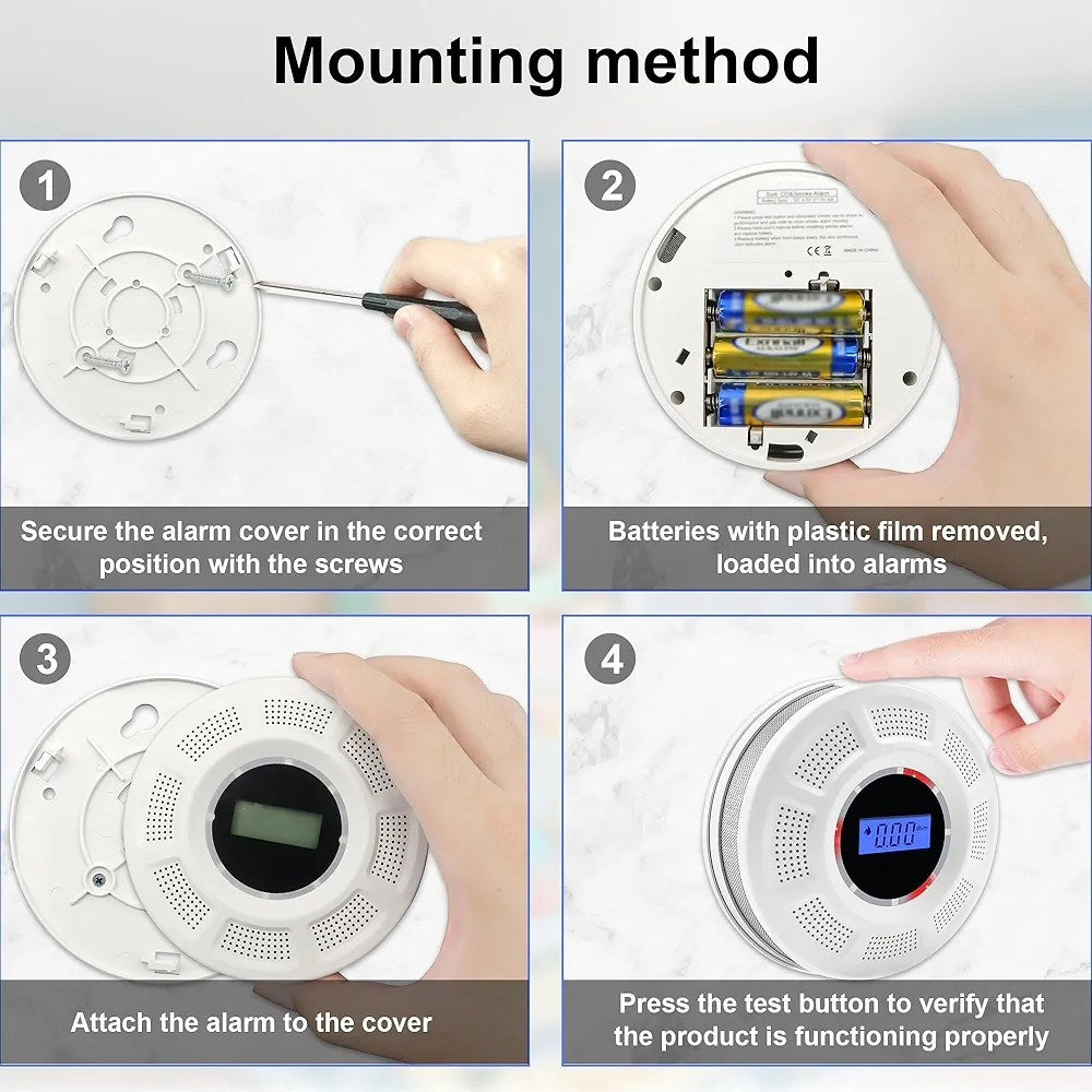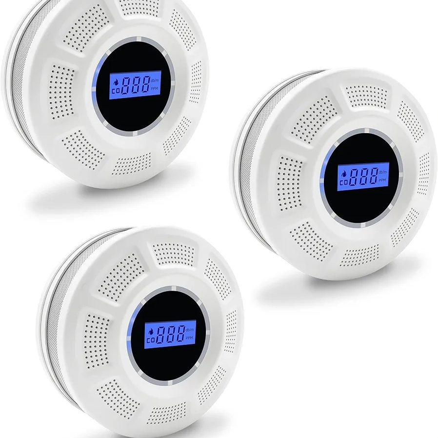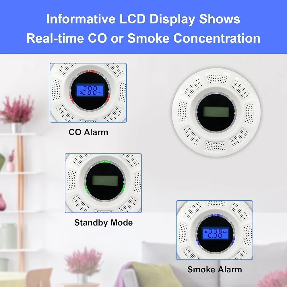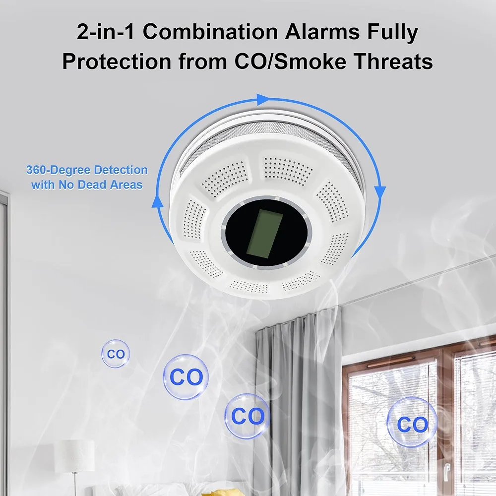 Detector de humo y detector de monóxido de carbono con pantalla LCD, alarma de humo de doble sensor y detector de CO con indicadores LED y botón de prueba/silencio