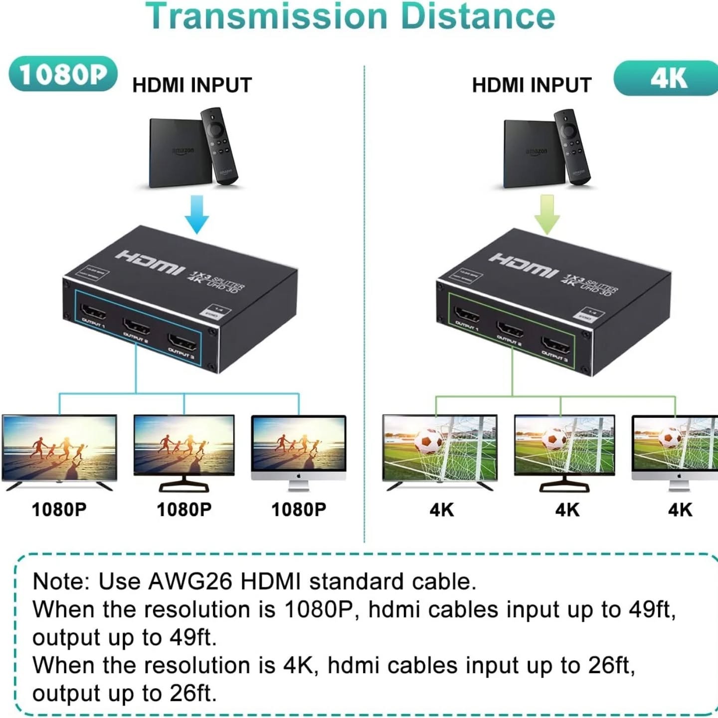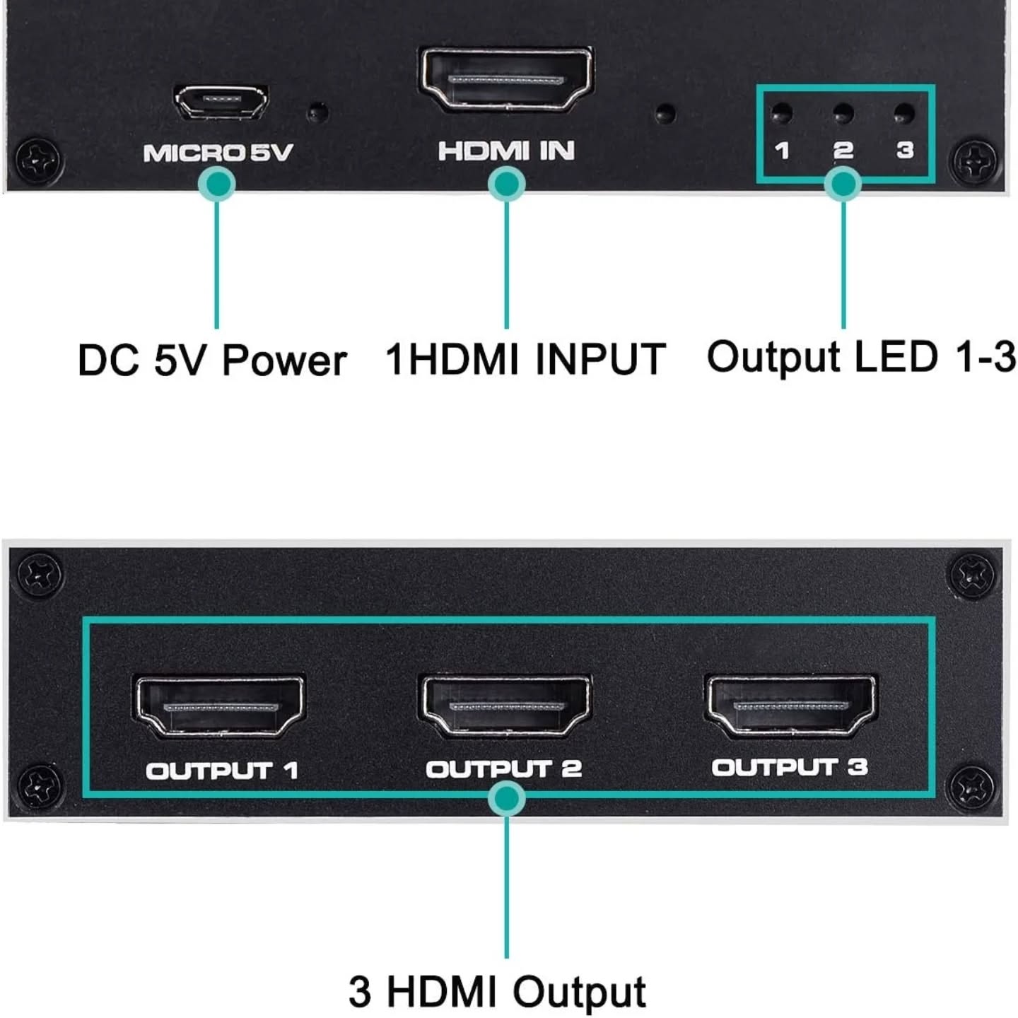 Divisor HDMI 1x3, 1 en 3 salidas HDMI Splitter Audio Video Distribuido...