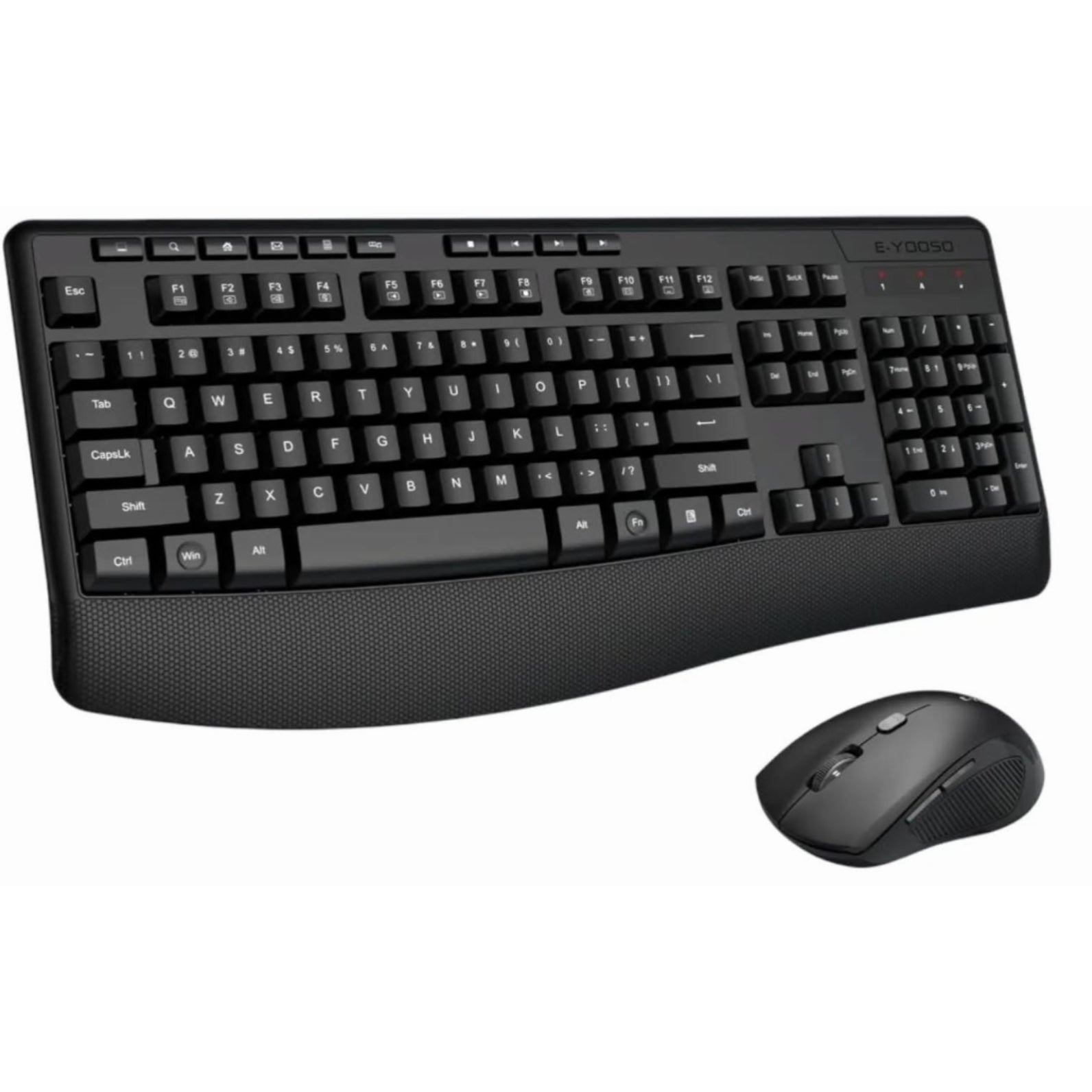 E-YOOSO - Combo de teclado y mouse inalámbricos, teclado inalámbrico ergonómico de tamaño completo de 2.4 GHz con reposamuñecas, 3 DPI ajustables y 6 botones USB inalámbrico para computadora, laptop.