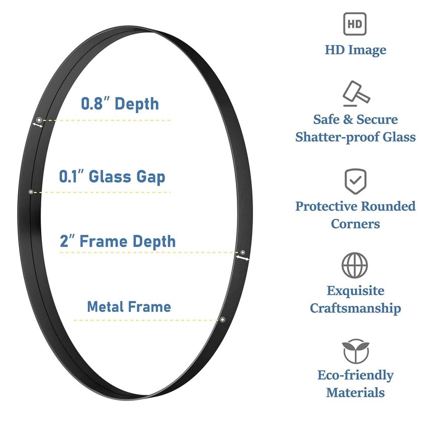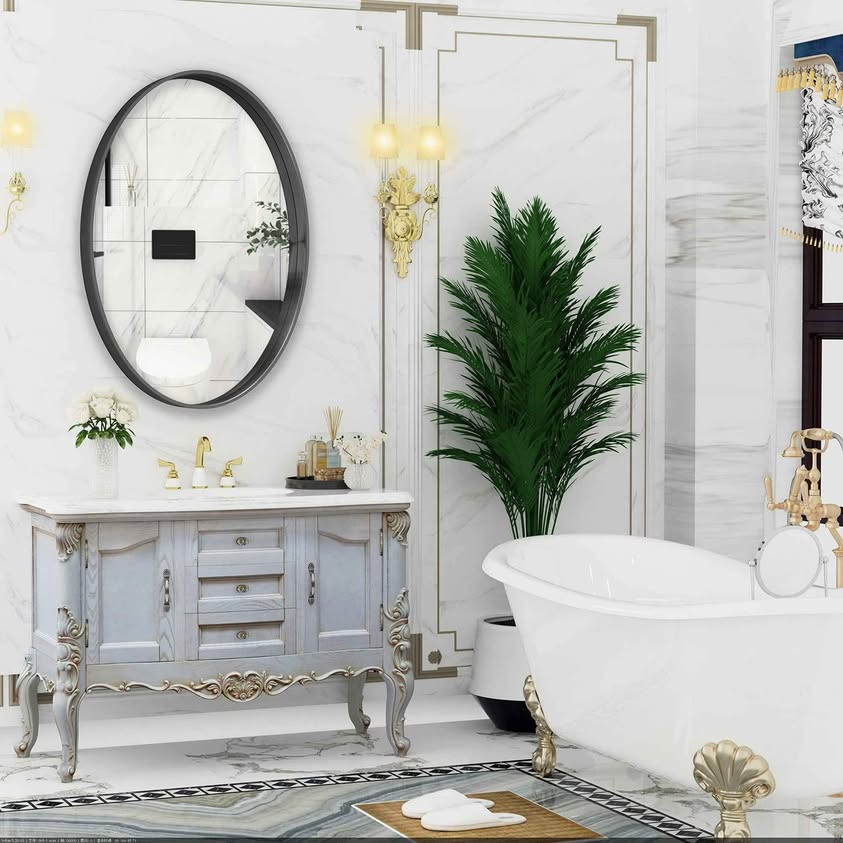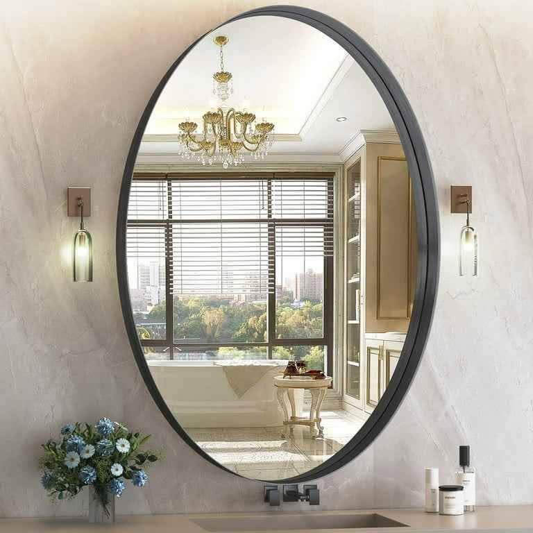 Espejo de Pared Ovalado de 24x36 Pulgadas para Baño, Espejos de Baño con Marco de Metal, Espejo Montado en la Pared (Horizontal/Vertical).