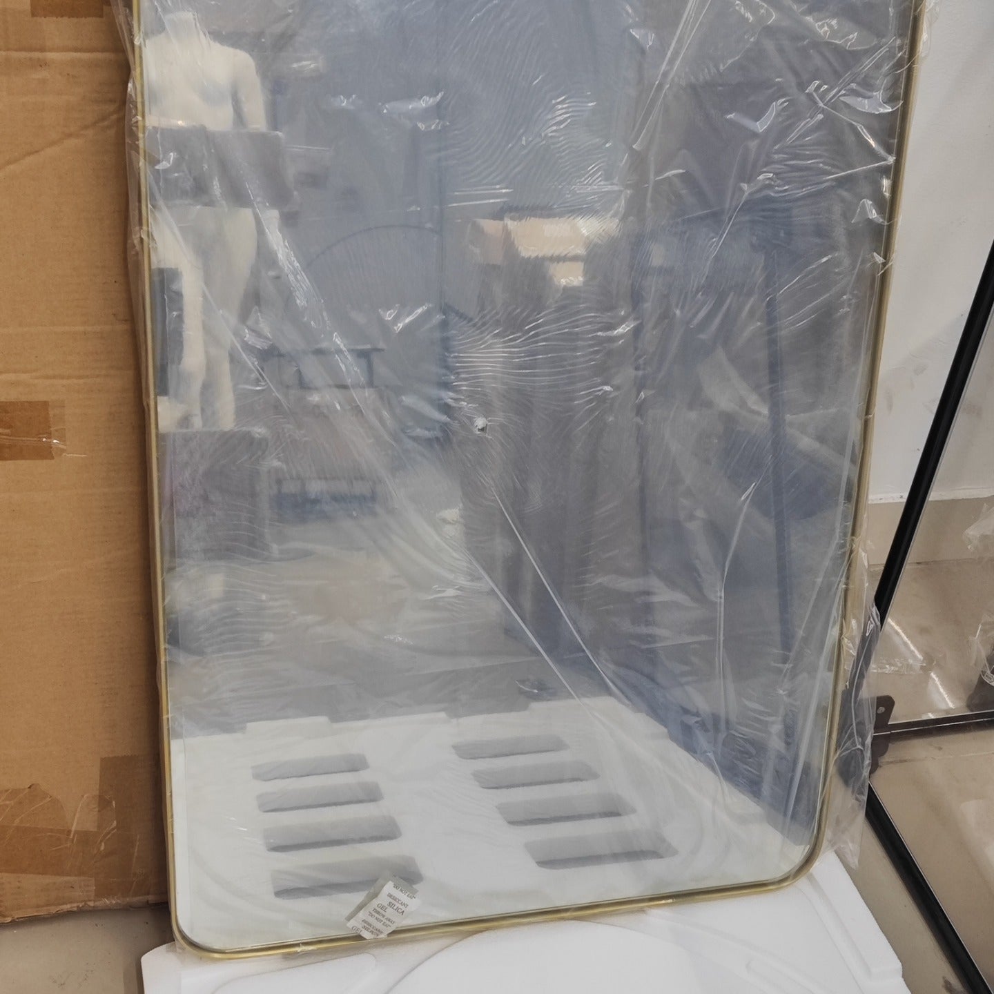 Espejo DOHEEM de baño dorado, 24 x 36 pulgadas, marco de metal dorado cepillado, espejo rectangular redondeado de baño dorado para pared.