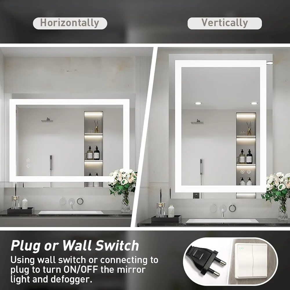 Espejo FTOTI de baño LED de 36 x 24 pulgadas para tocador, espejo iluminado montado en la pared, espejo de baño sin marco con luces regulables, función de memoria antivaho (horizontal y vertical).