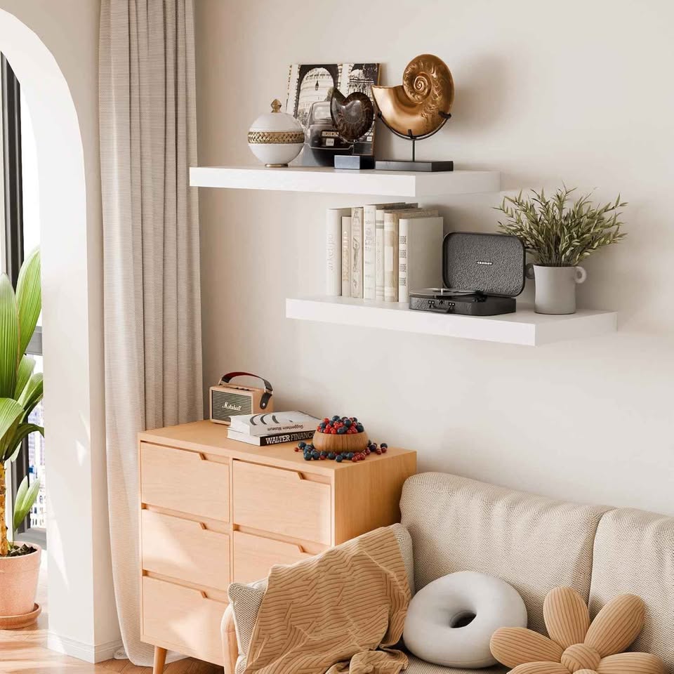 Estantes flotantes blancos de 23.6 pulgadas para pared, estantes flota...
