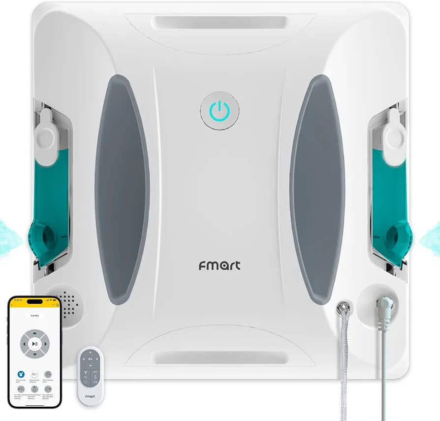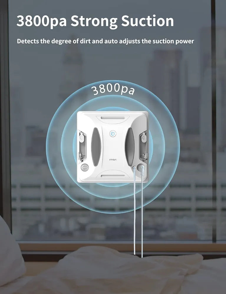 FMART W6 Robot de limpieza de ventanas, robot limpiador de ventanas automático de succión fuerte de 3800 Pa, rociador de agua de doble cara, control remoto de aplicación, adecuado para ventanas de gran altura al aire libre e interior.