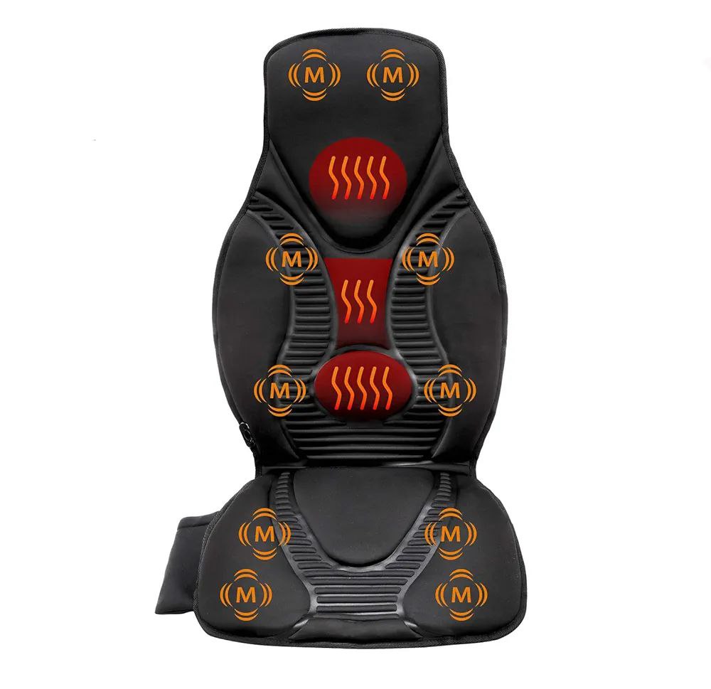 FS8816 - Cojín de asiento de masaje, masajeador con calor, 10 nodos de masaje para cuello, hombros, espalda/lumbar, muslos para el hogar, oficina (negro)