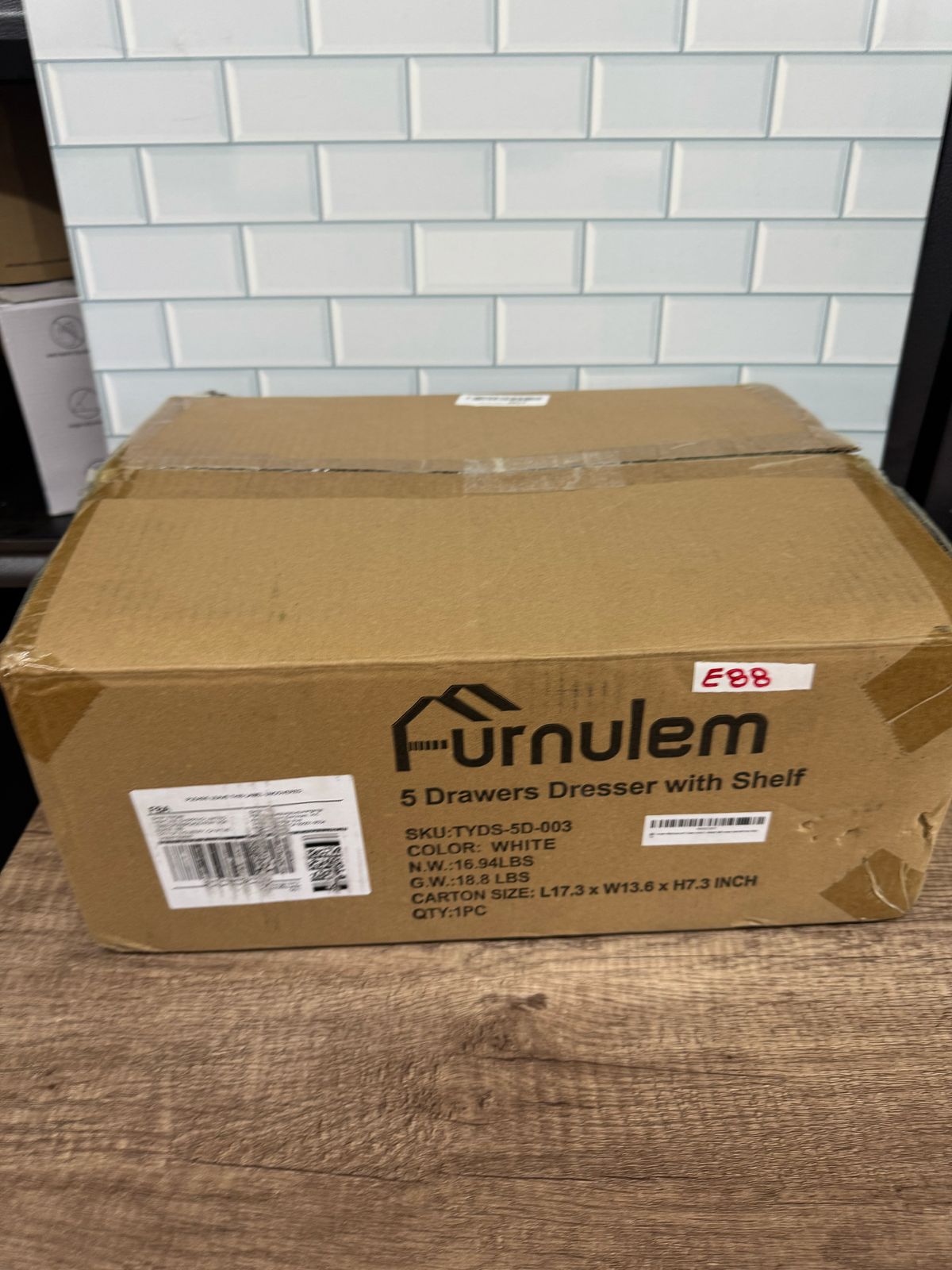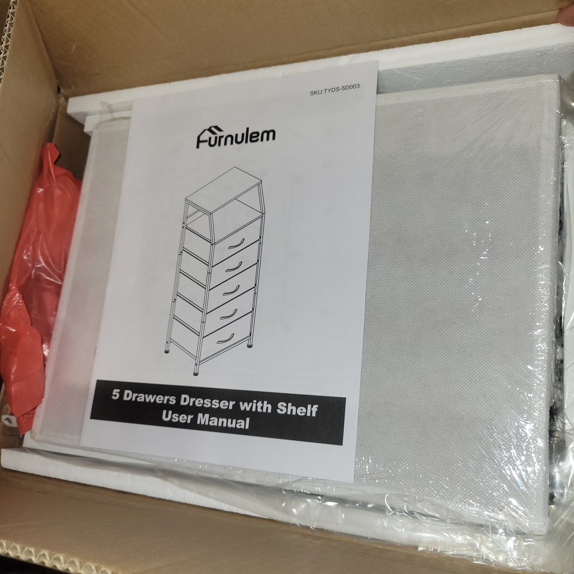 Furnulem Cómoda blanca con 5 cajones, cómoda de tela de torre de almac...