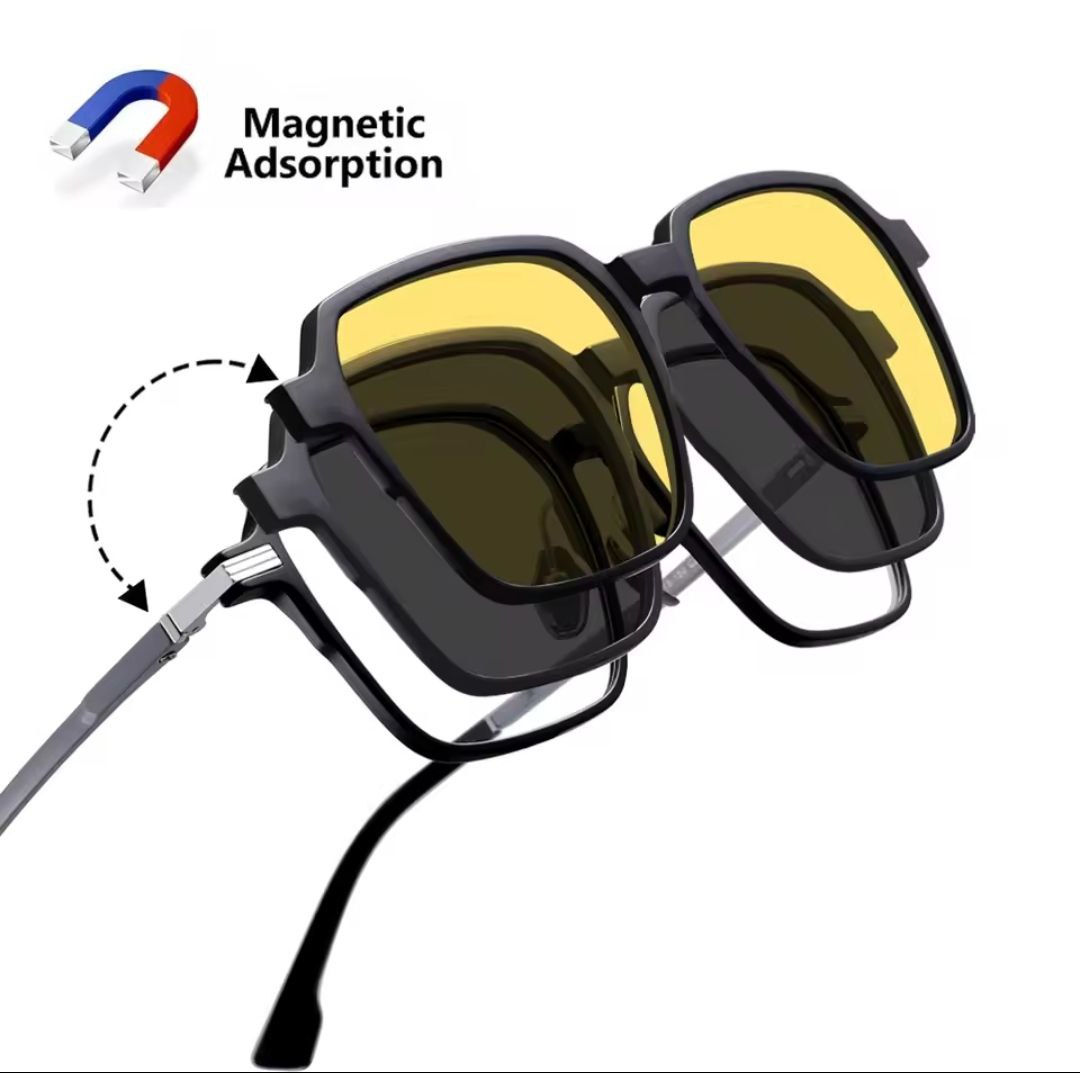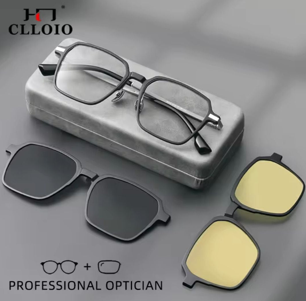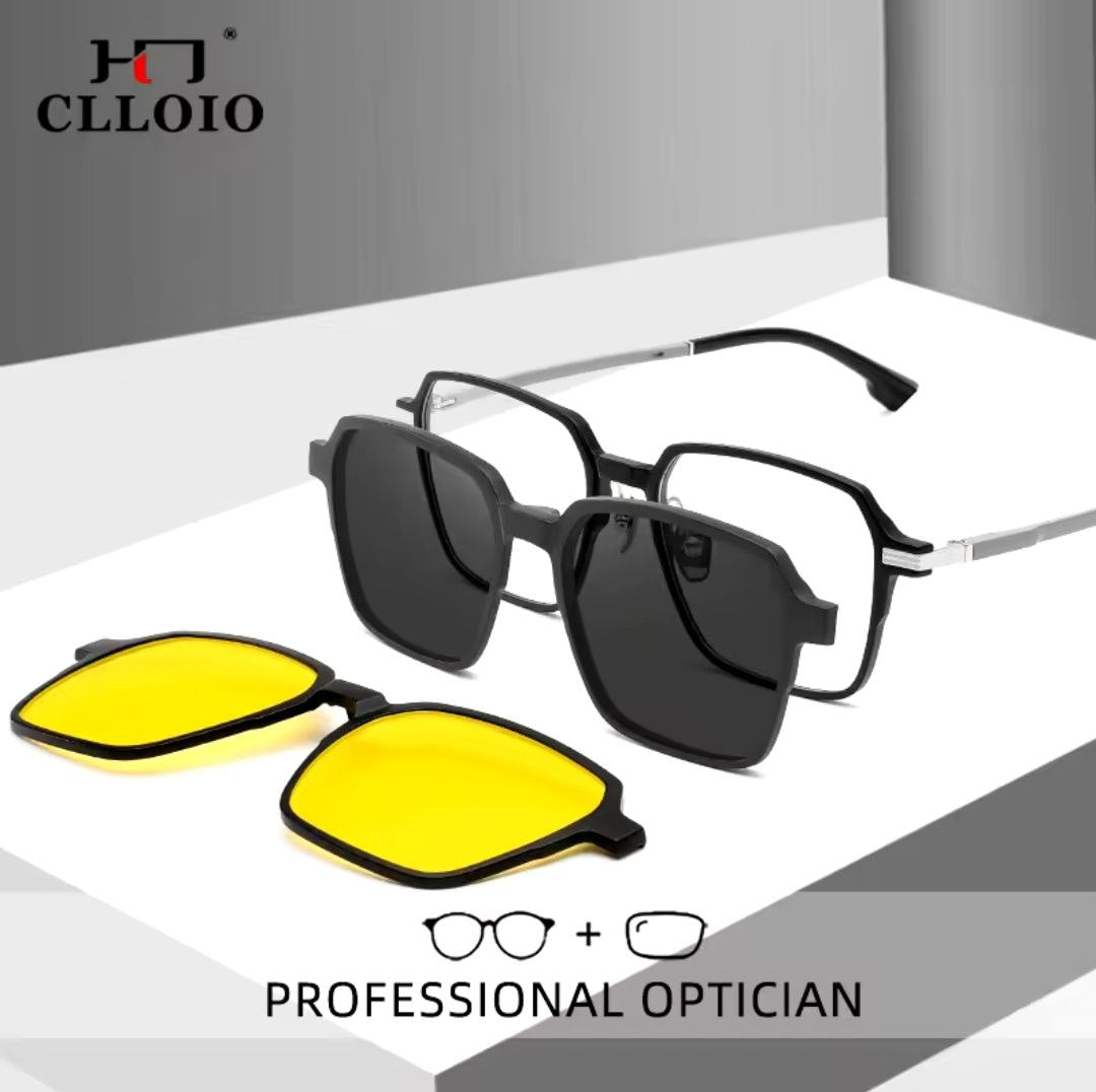 CLLOIO 3 en 1 Clip magnético en gafas para miopía hombres mujeres Anti rayos azules gafas de sol polarizadas graduadas (-2.50)