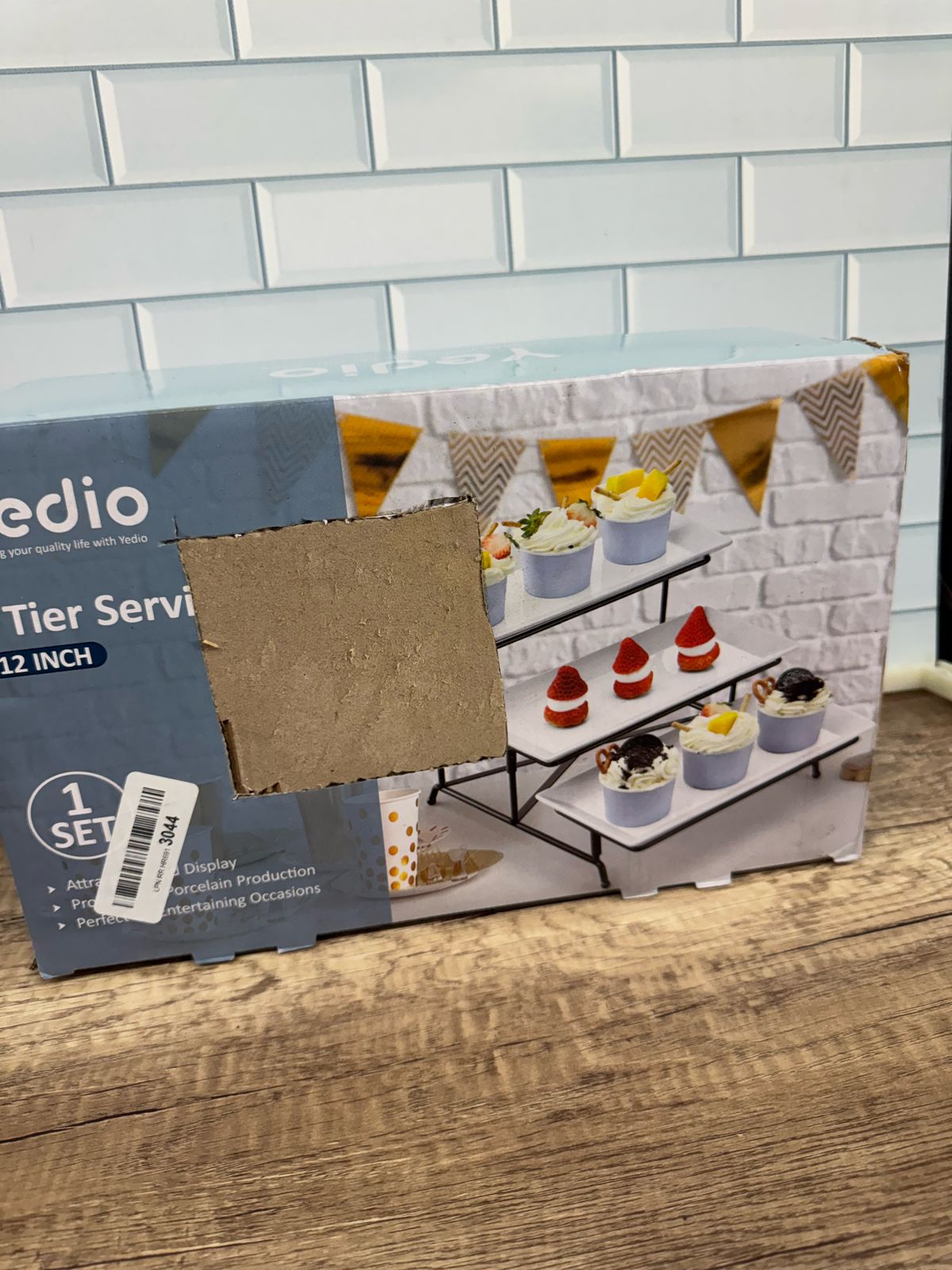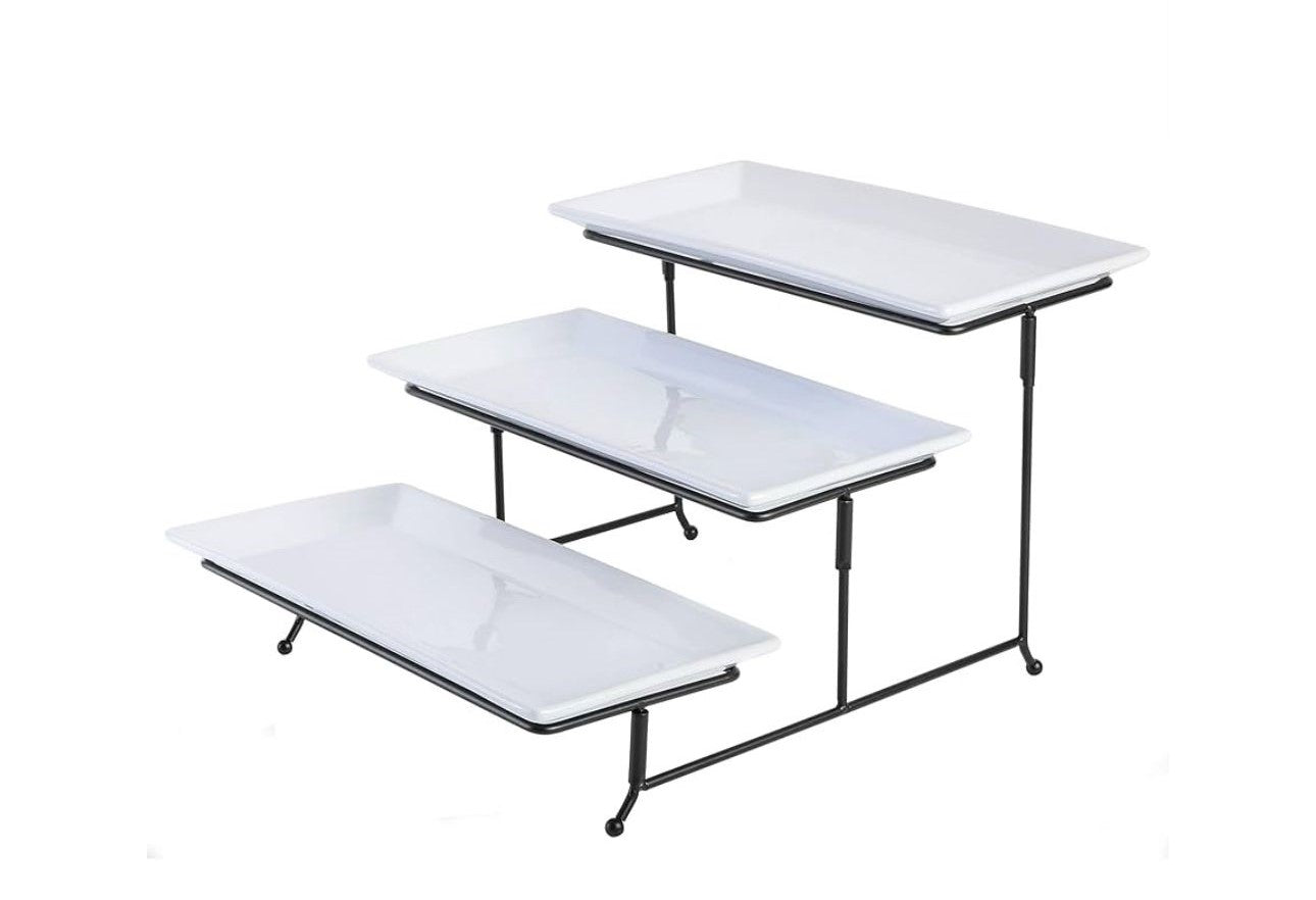 Bandeja Gibson juego de platos, 3 unidades, color blanco, Juego de platos con base de metal, 3 niveles, Blanco
