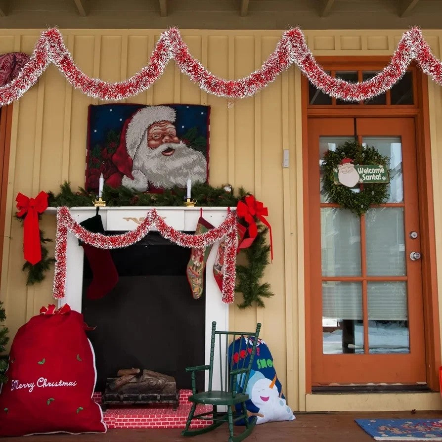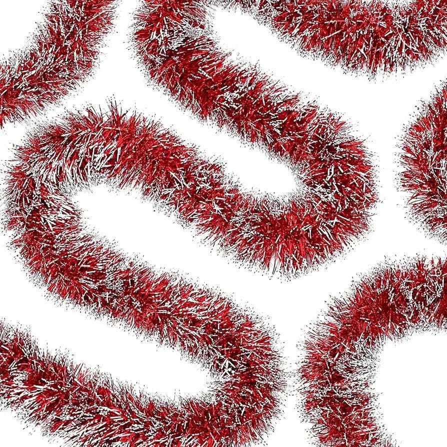 Guirnalda de oropel de Navidad de 50 pies, guirnalda metálica con punt...
