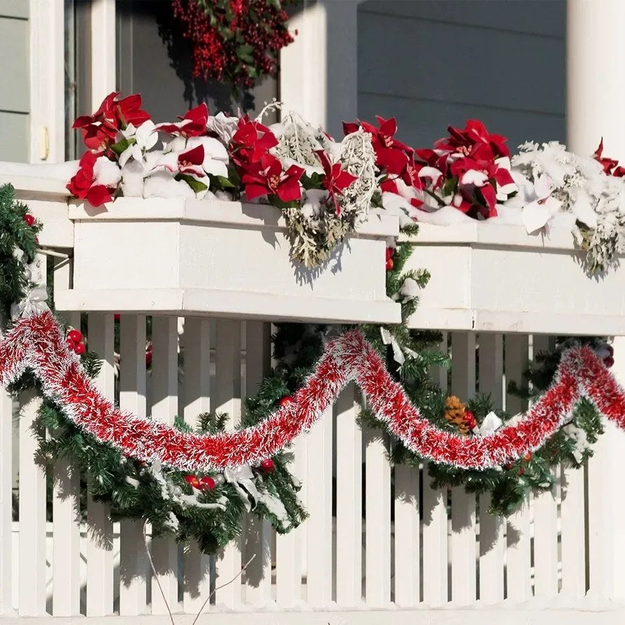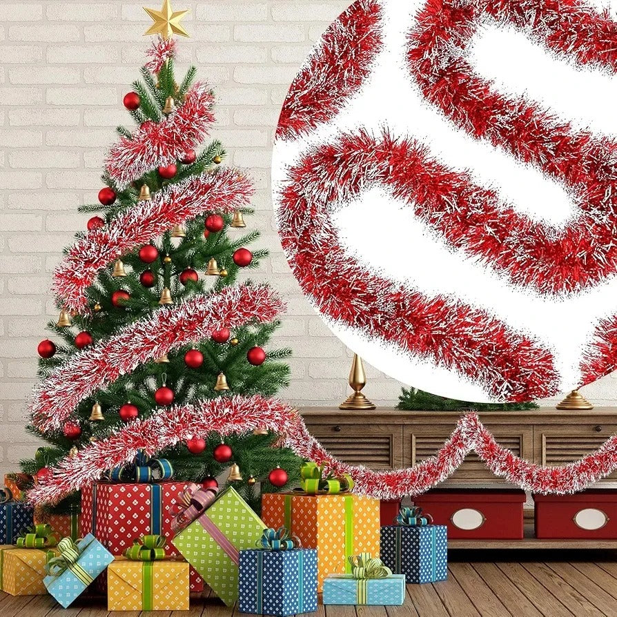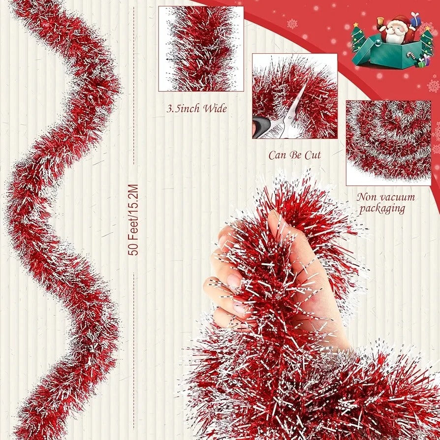Guirnalda de oropel de Navidad de 50 pies, guirnalda metálica con punta de escarcha, decoración de árbol de Navidad, corona brillante para suministros de fiesta de Navidad, decoración interior.