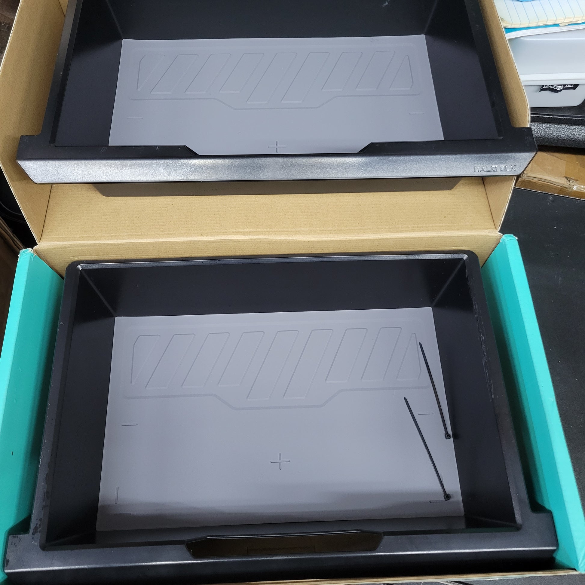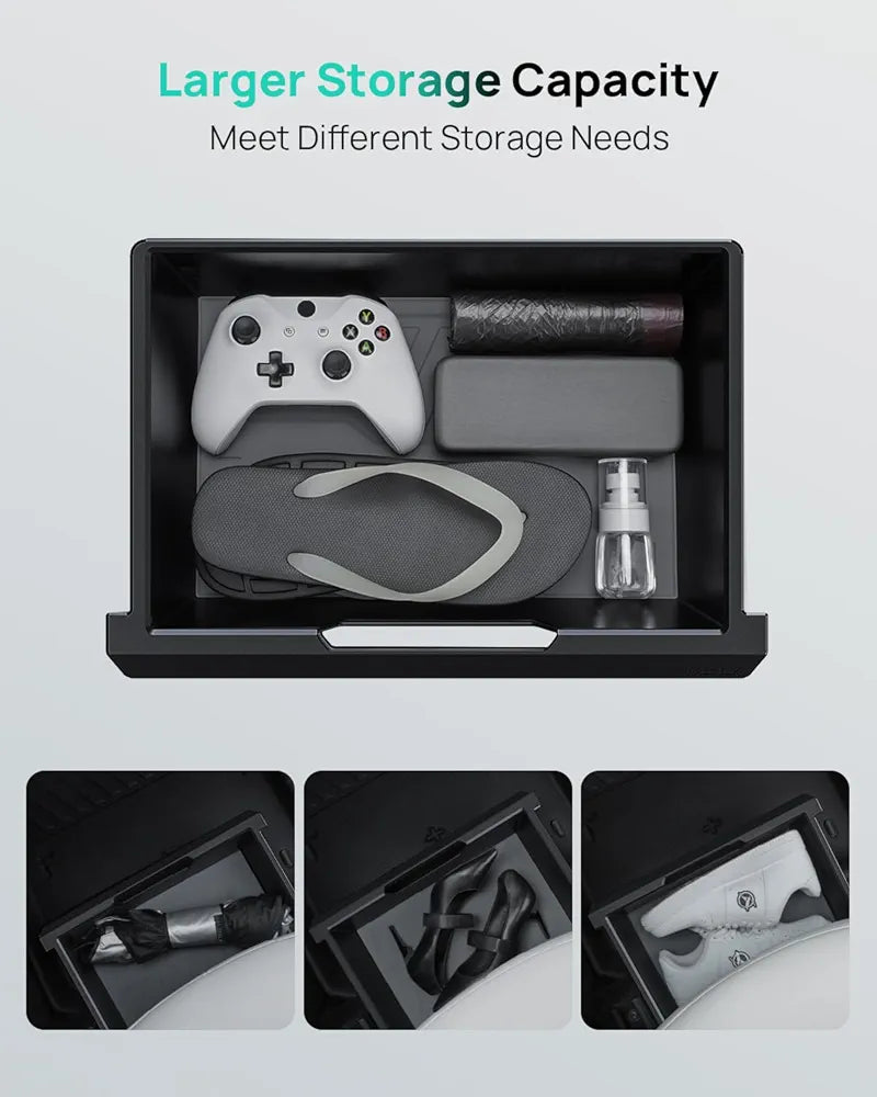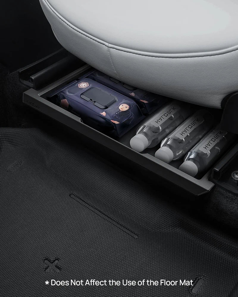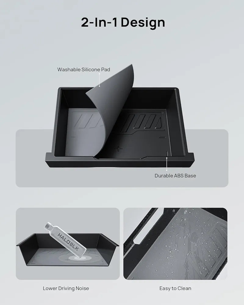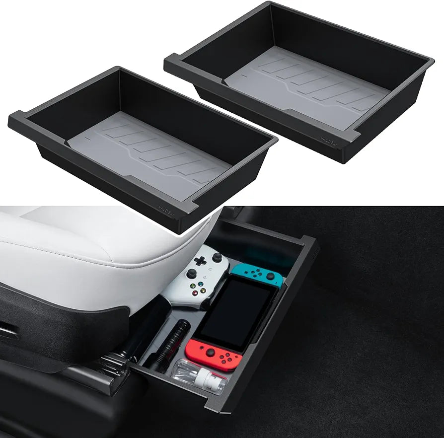 HALOBLK Paquete de 2 organizadores impermeables modelo Y para debajo del asiento, bandeja oculta 2 en 1 para Tesla Model Y 2024-2021 [no compatible con el nuevo modelo Y 2025 Refresh].