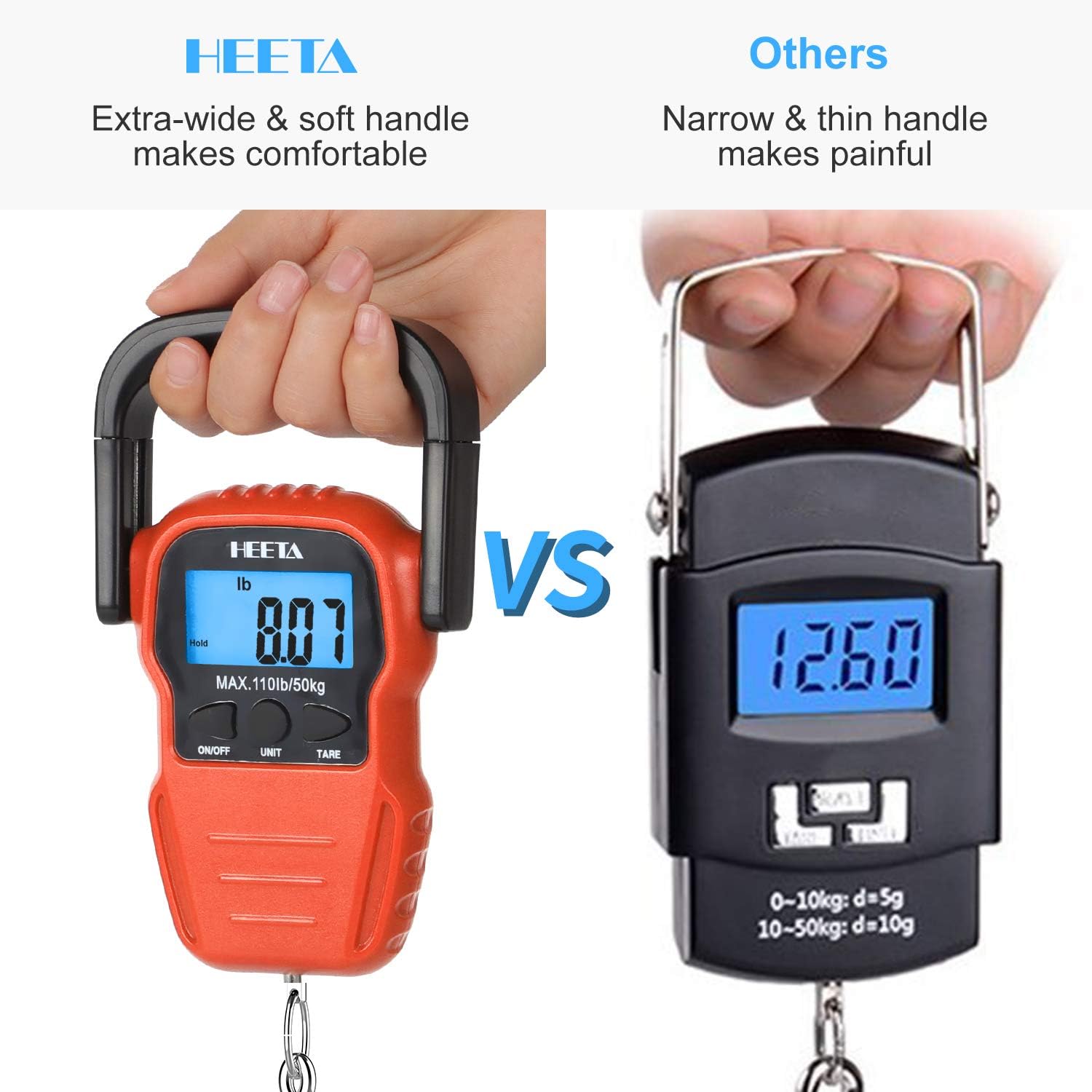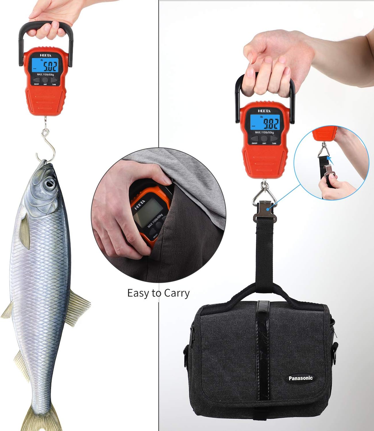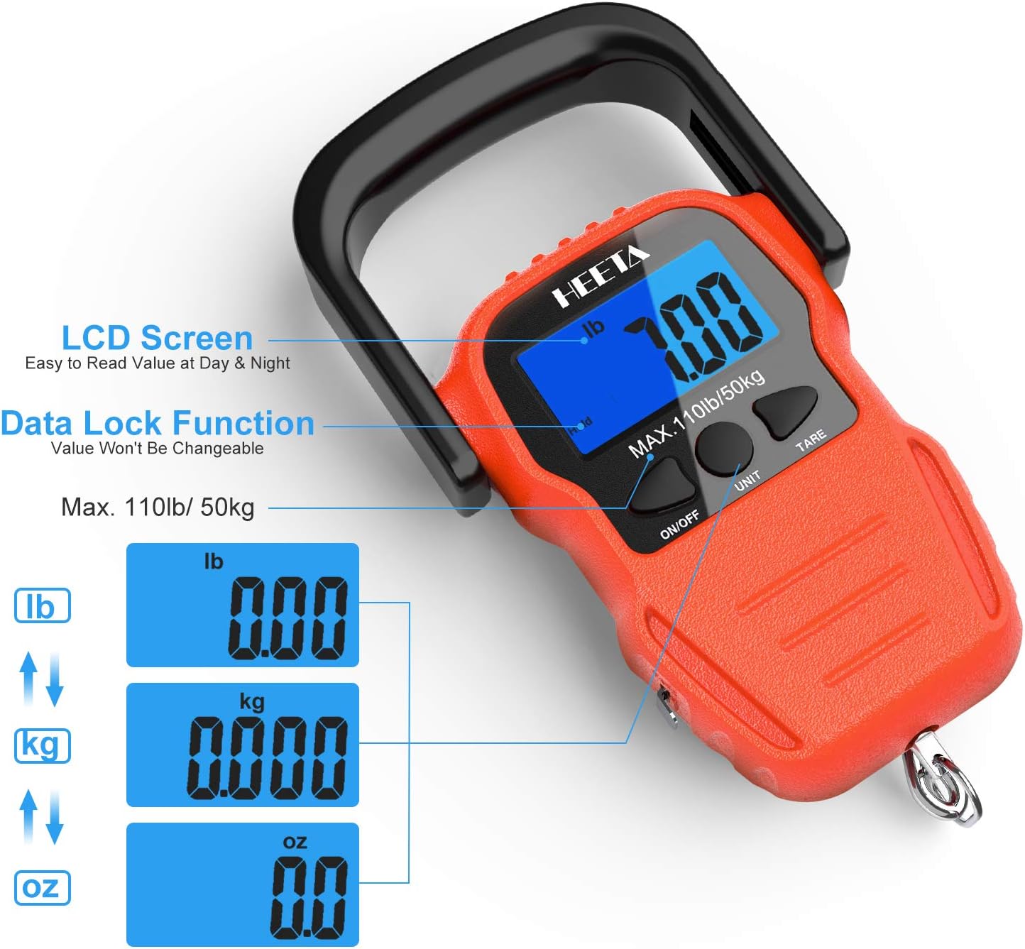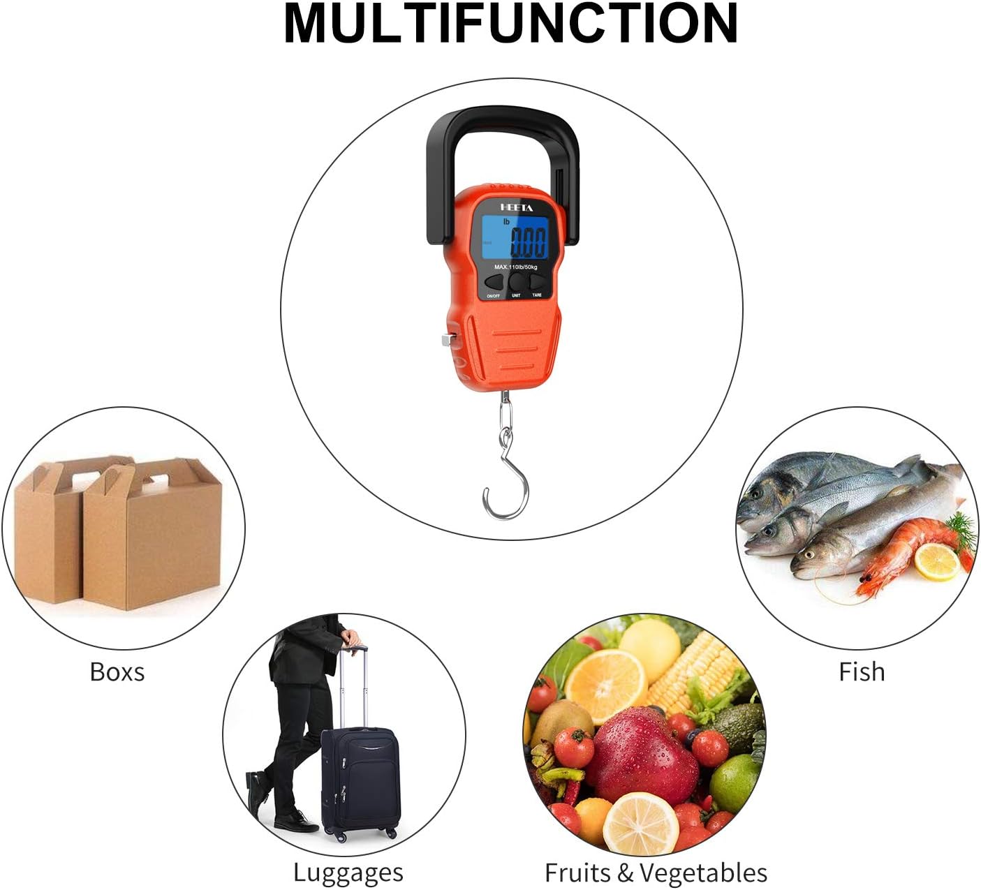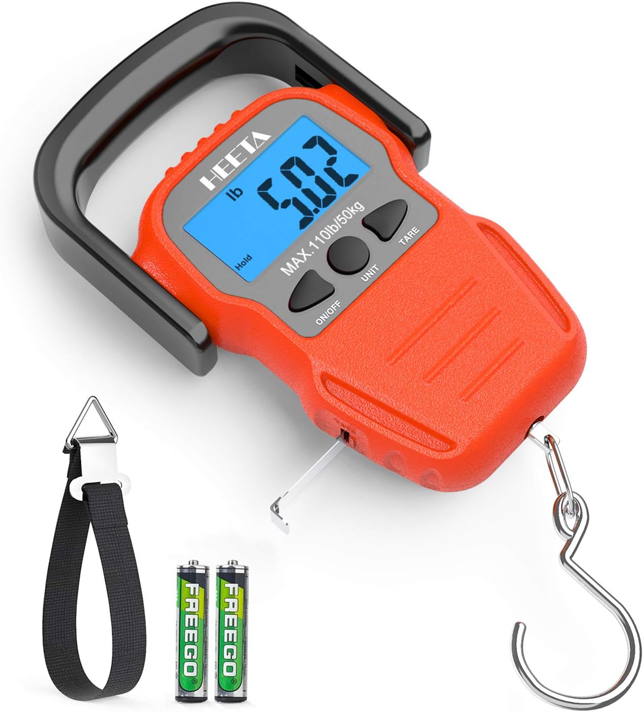 HEETA Báscula de pescado con pantalla LCD retroiluminada, hasta 110 li...
