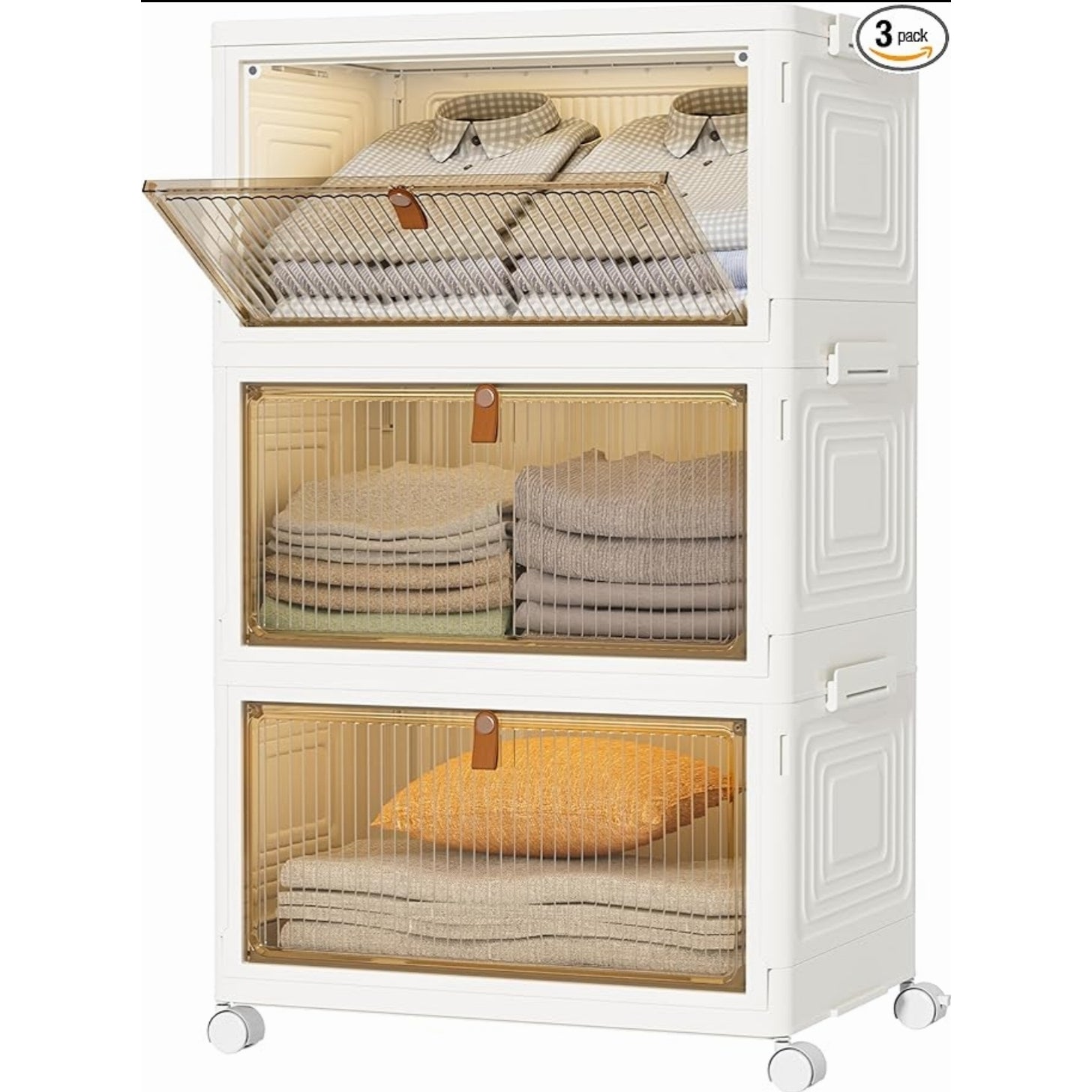 HOMIDEC Organizadores de armario y almacenamiento de 70 cuartos de galón, paquete de 3 contenedores de almacenamiento apilables con 1 tapa, cajas organizadoras de armario para ropa, juguetes.