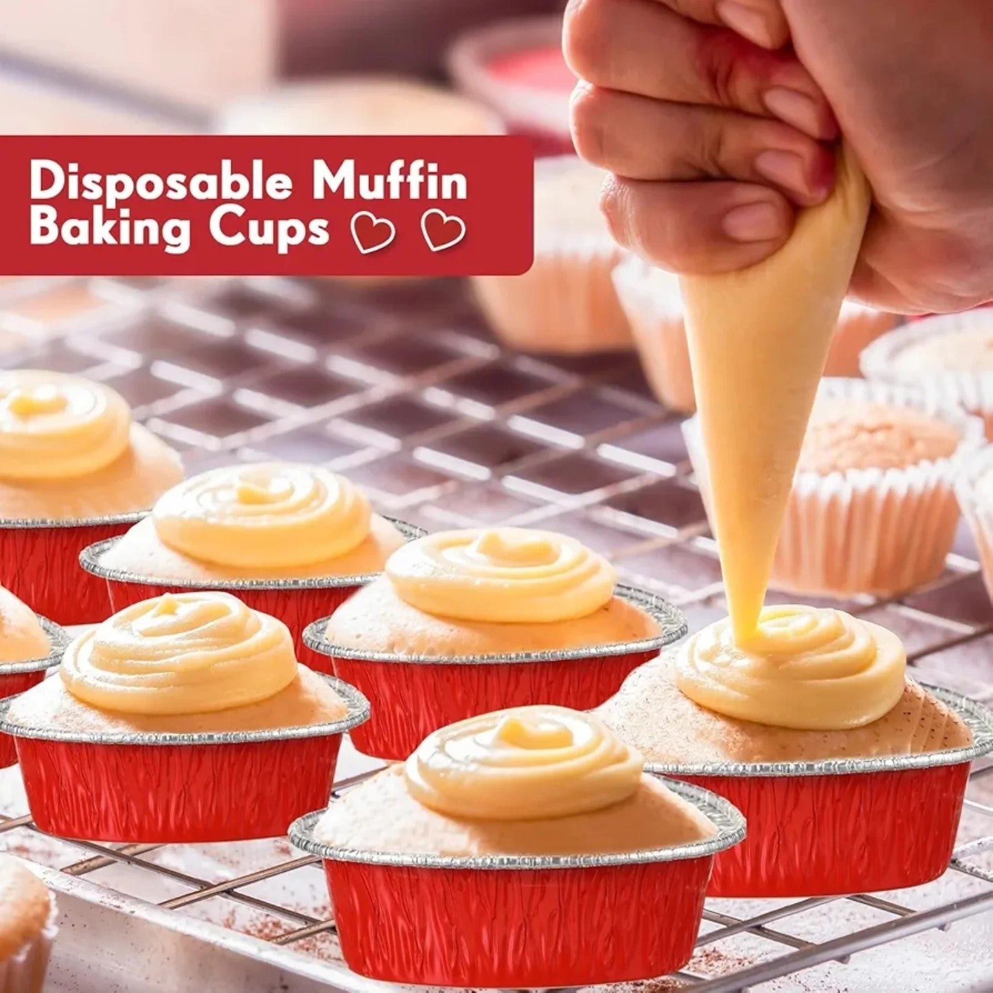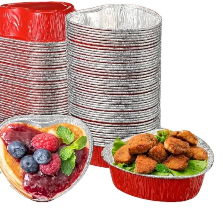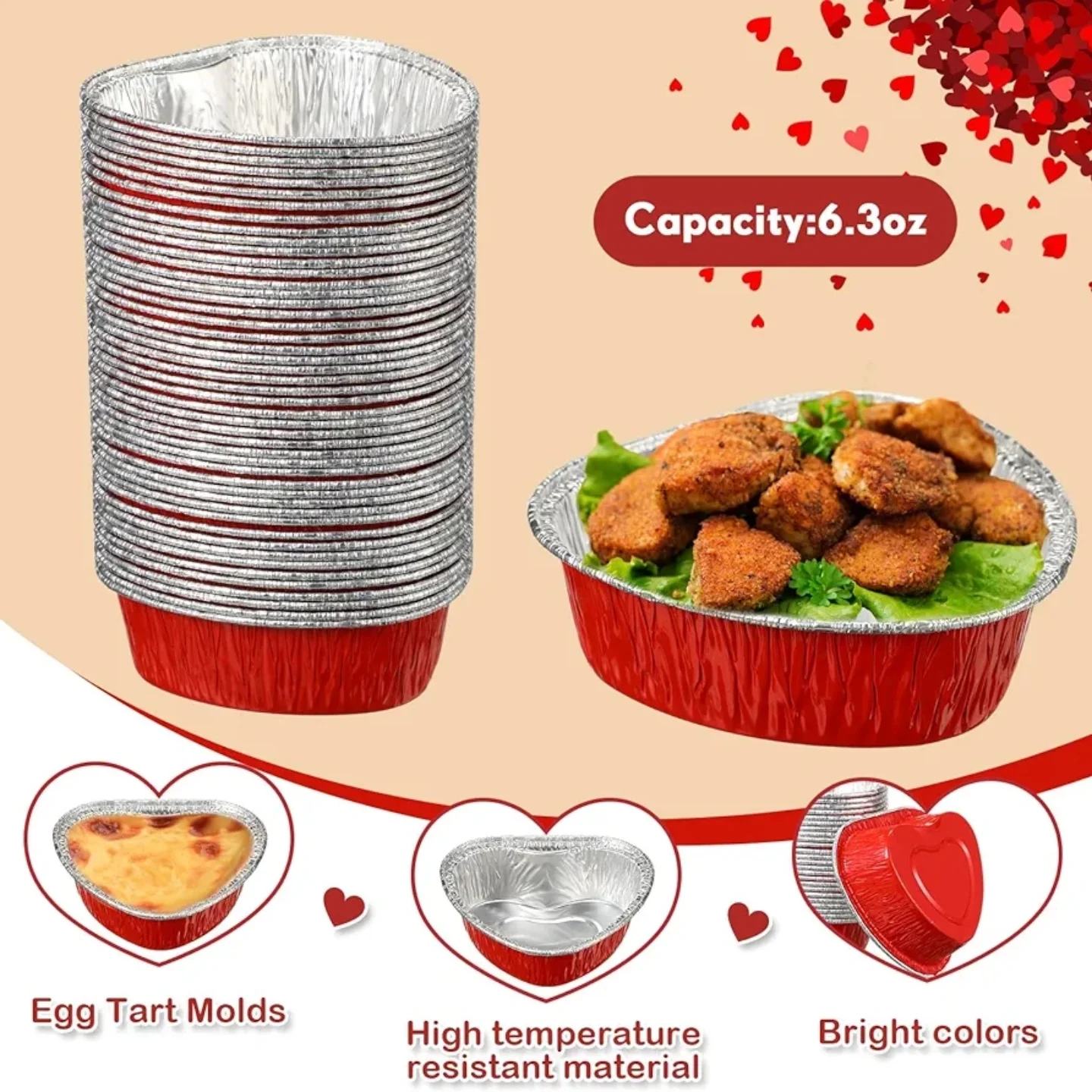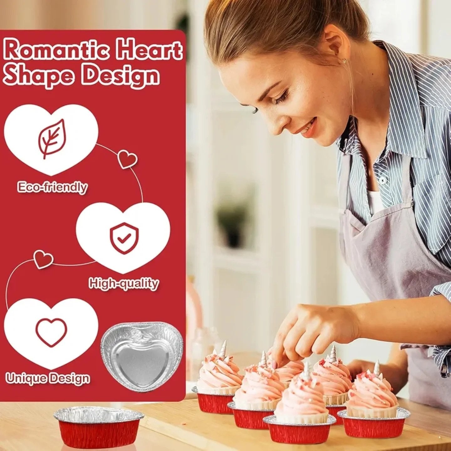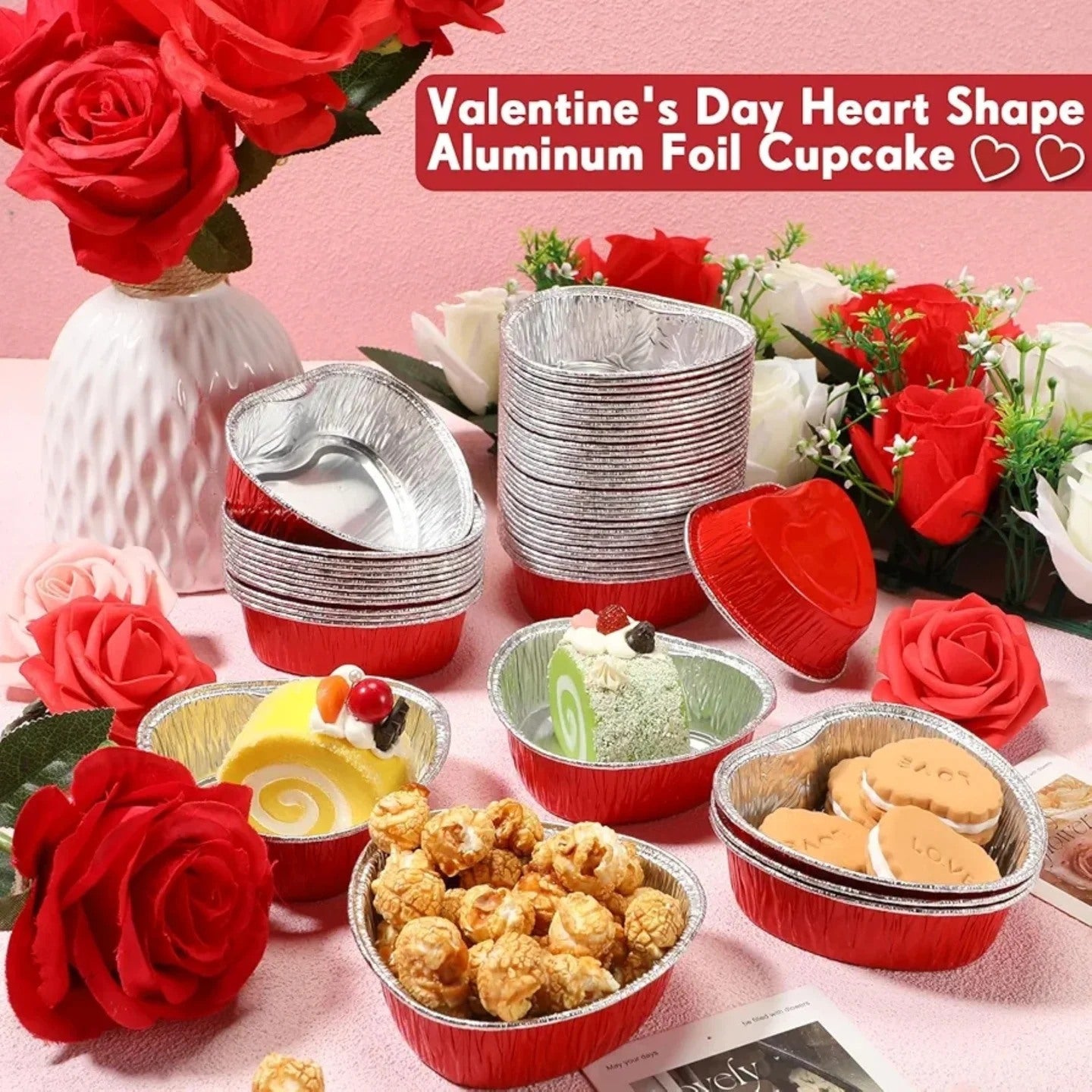 Honeydak Moldes para pasteles en forma de corazón, de papel de aluminio, para el día de San Valentín, mini forros para tartas de corazón, moldes desechables para hornear para bodas, aniversarios. 50 pcs