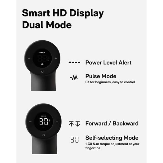 HOTO Taladro inalámbrico sin escobillas de 12 V, pantalla LED, 30 engr...