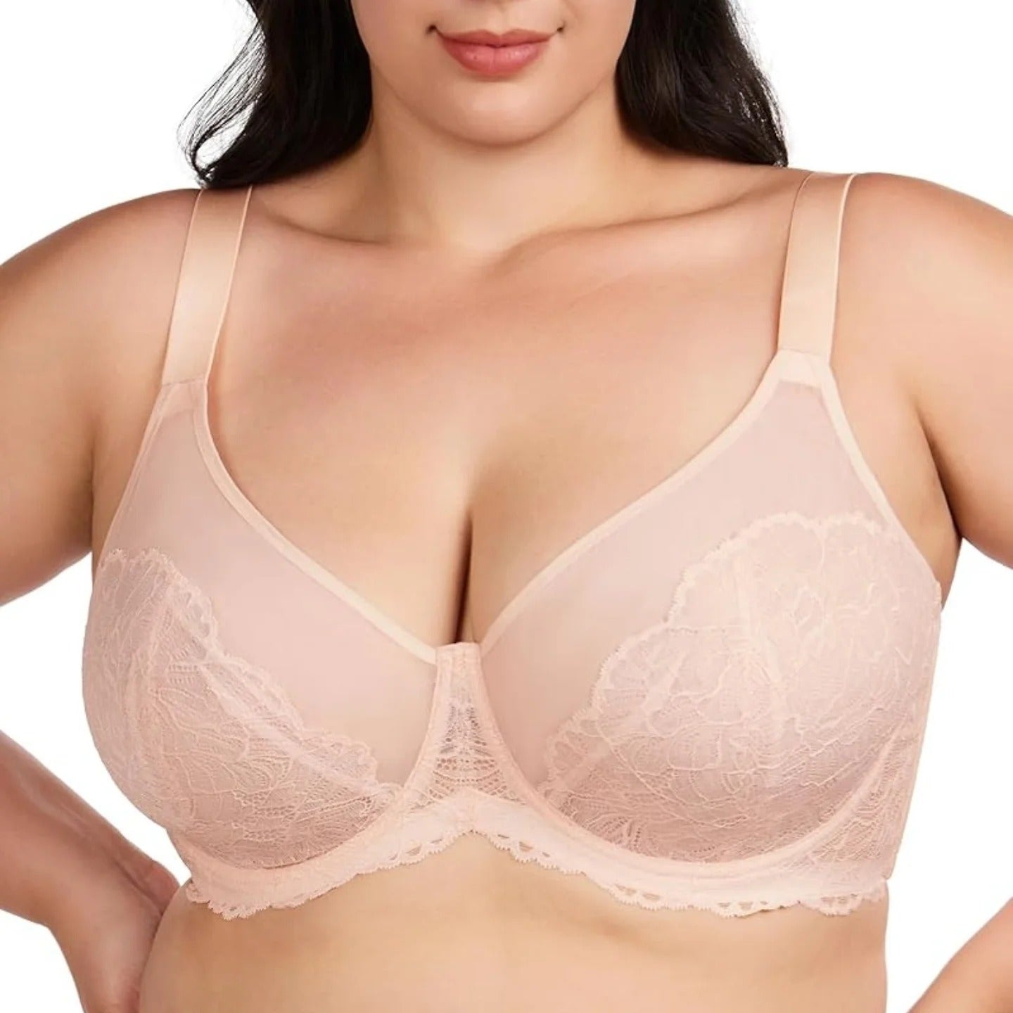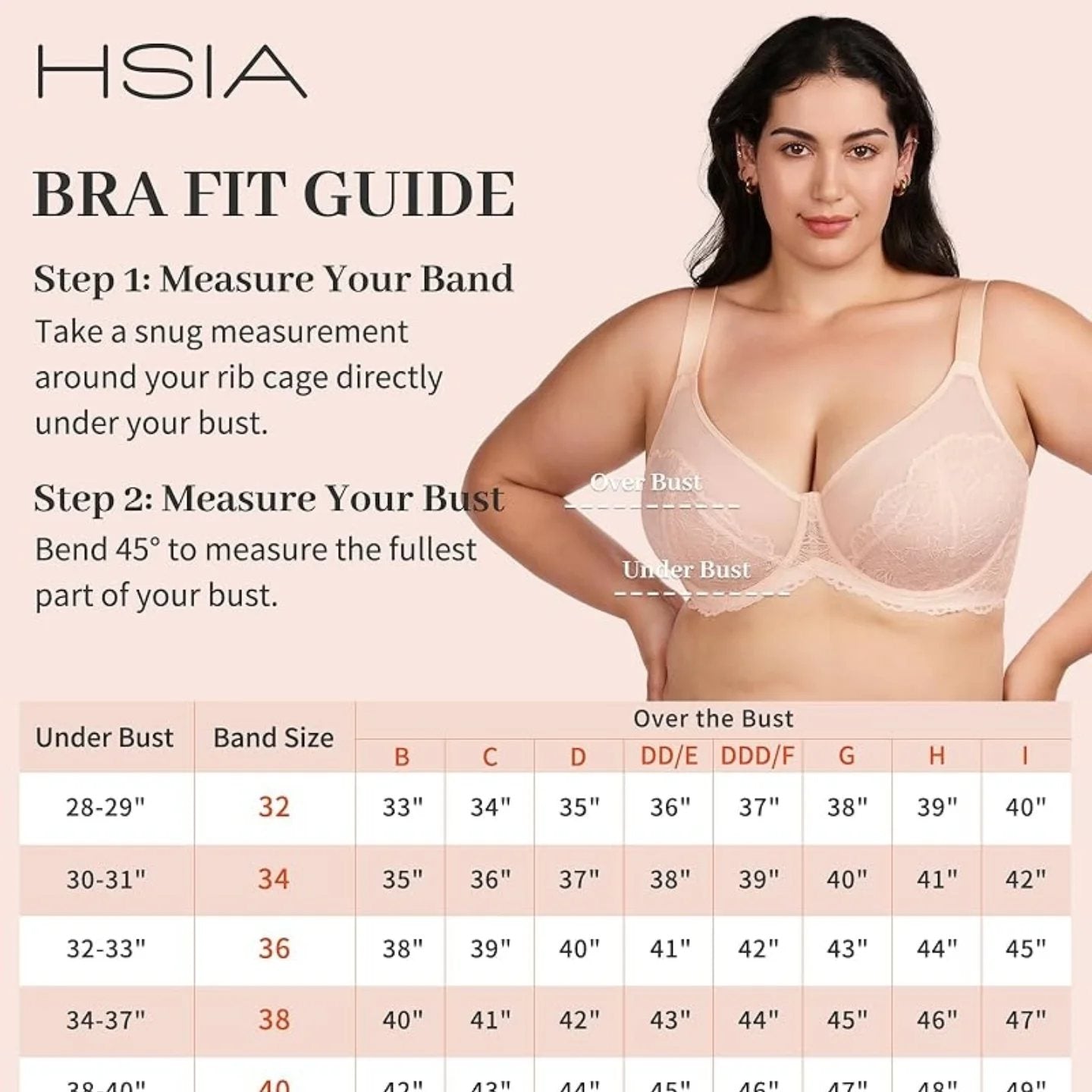 HSIA Sujetadores para mujer con encaje sin forro, brasier reductor de pecho de cobertura completa con aros.