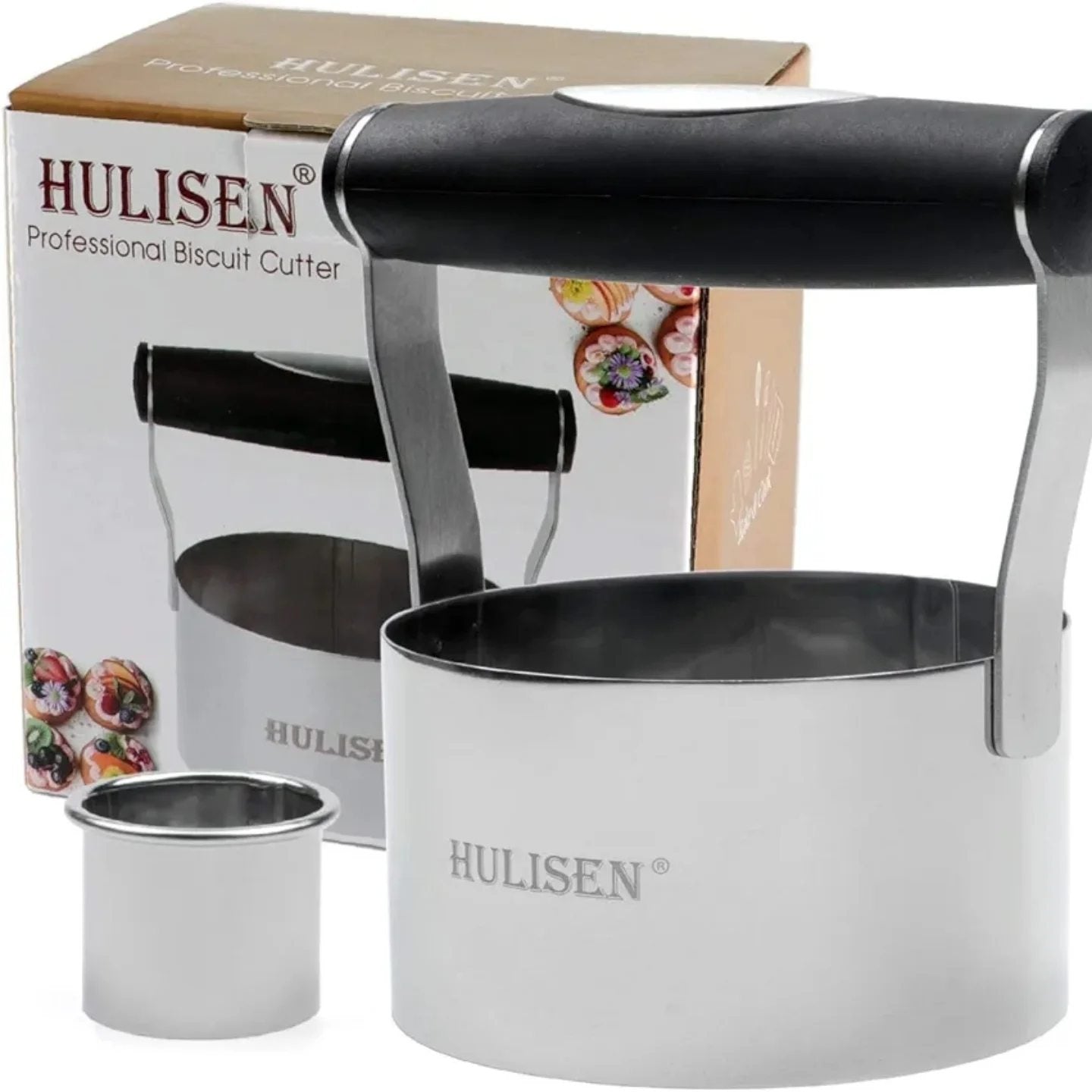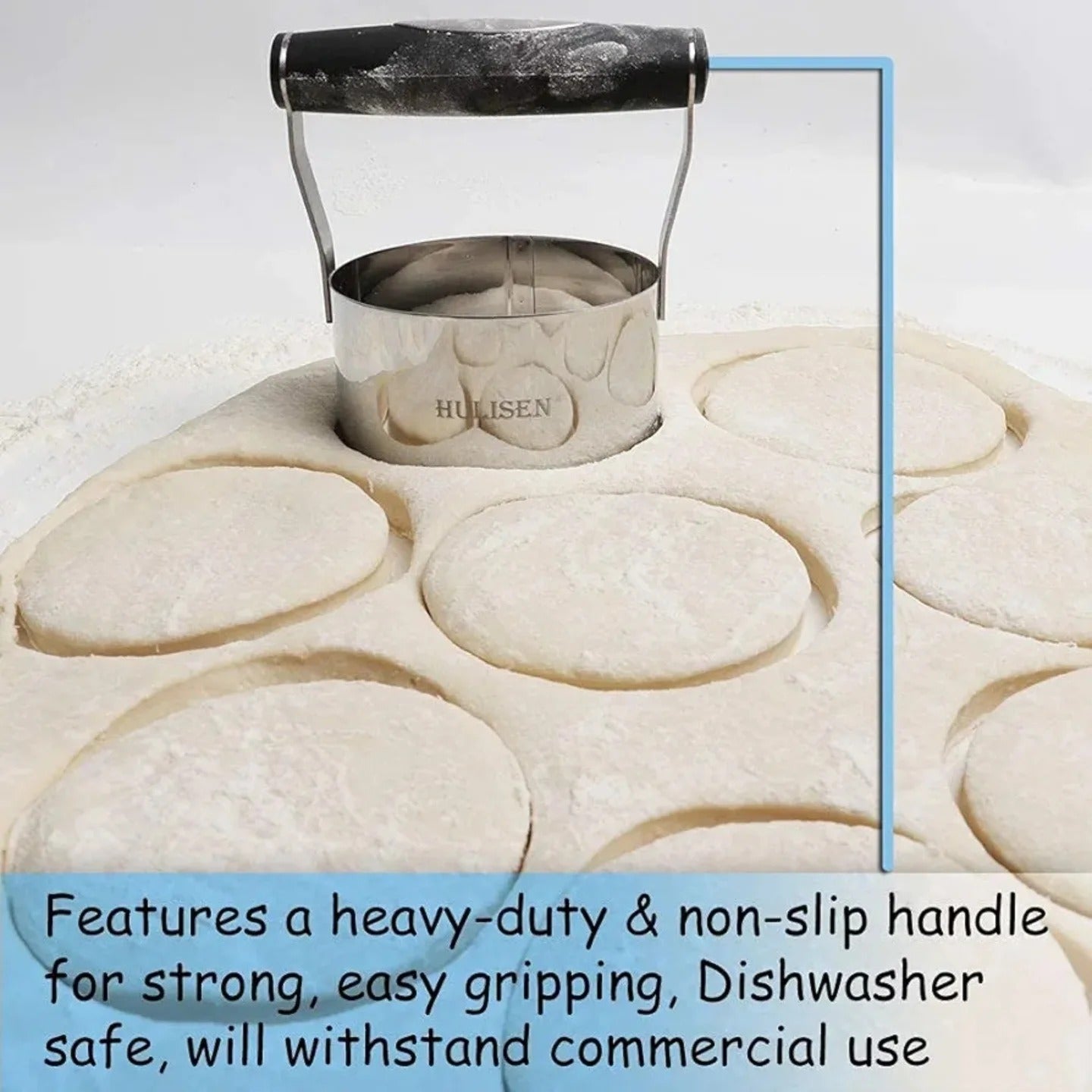 HULISEN Cortador de galletas de 3.5 pulgadas, cortador de galletas redondo de acero inoxidable con mango de agarre suave y cortador de galletas pequeño, herramientas profesionales.