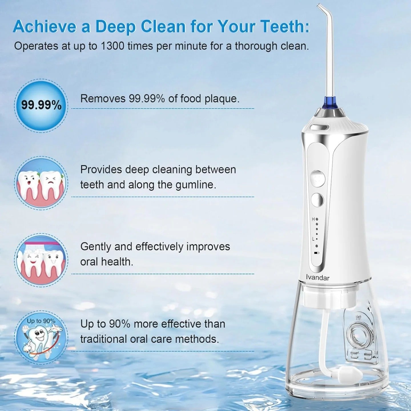 Ivandar Irrigador dental de agua para limpiador de dientes, inalámbric...