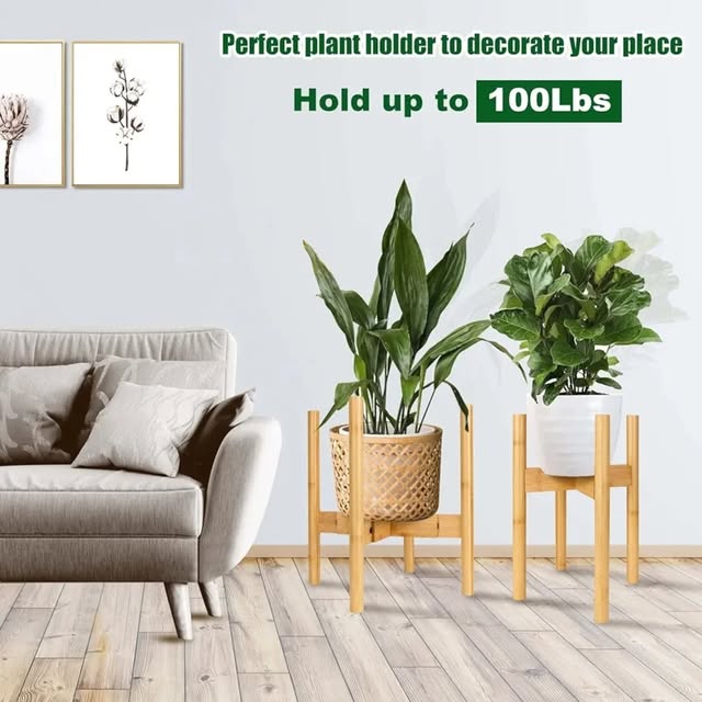 Juego de 2 soportes ajustables de bambú para plantas, moderno soporte ...