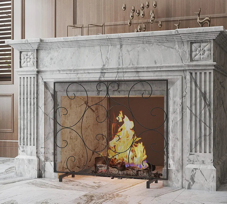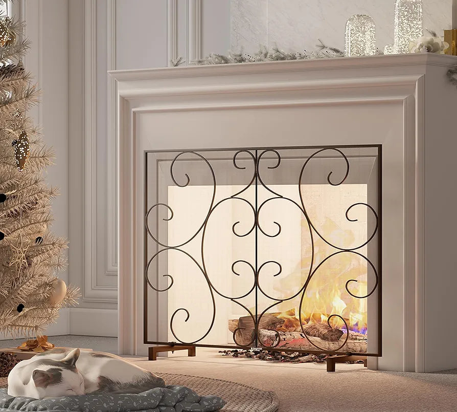 Kingson Cubierta de pantalla plana decorativa para chimenea de un solo panel, hecha a mano, malla de metal duradera, resistente al calor, malla de protección contra chispas contra incendios, 38 x 31 pulgadas