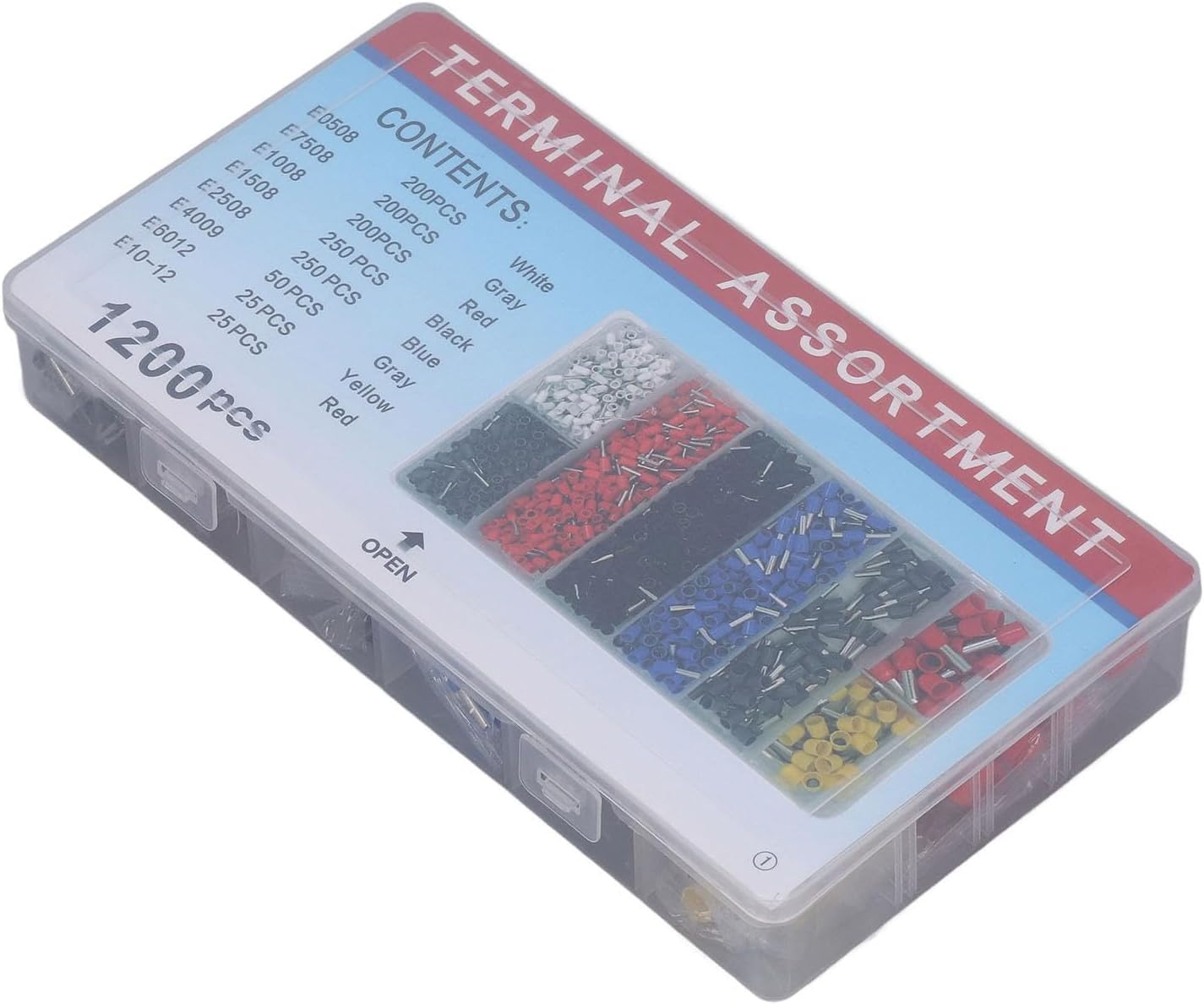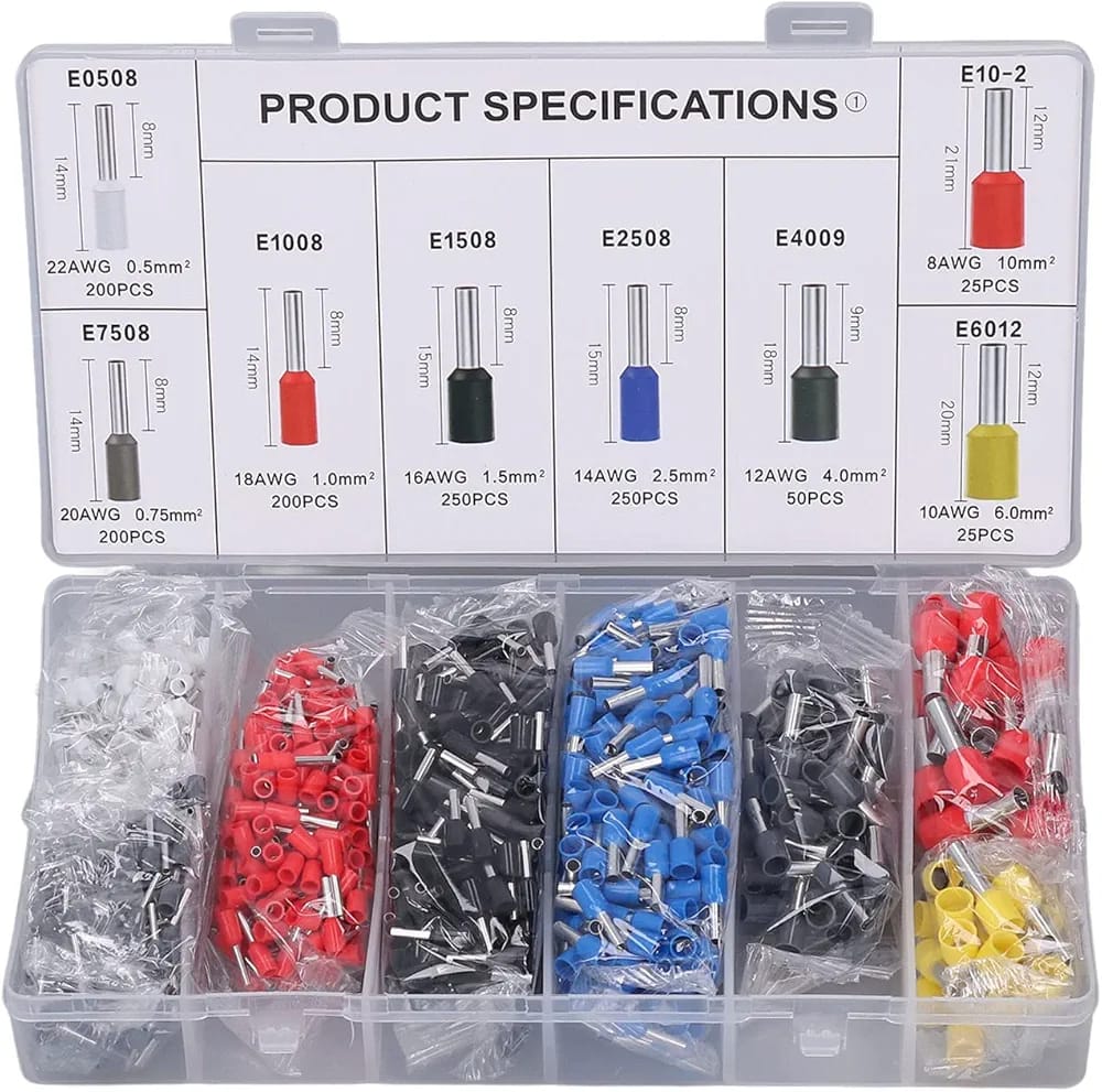 Kit de terminales de casquillos de cable de 1200 piezas, kit de engarce de casquillos, terminales de cable aislados, conector de terminal de clavija de engarce de casquillo de cable AWG 22-12.