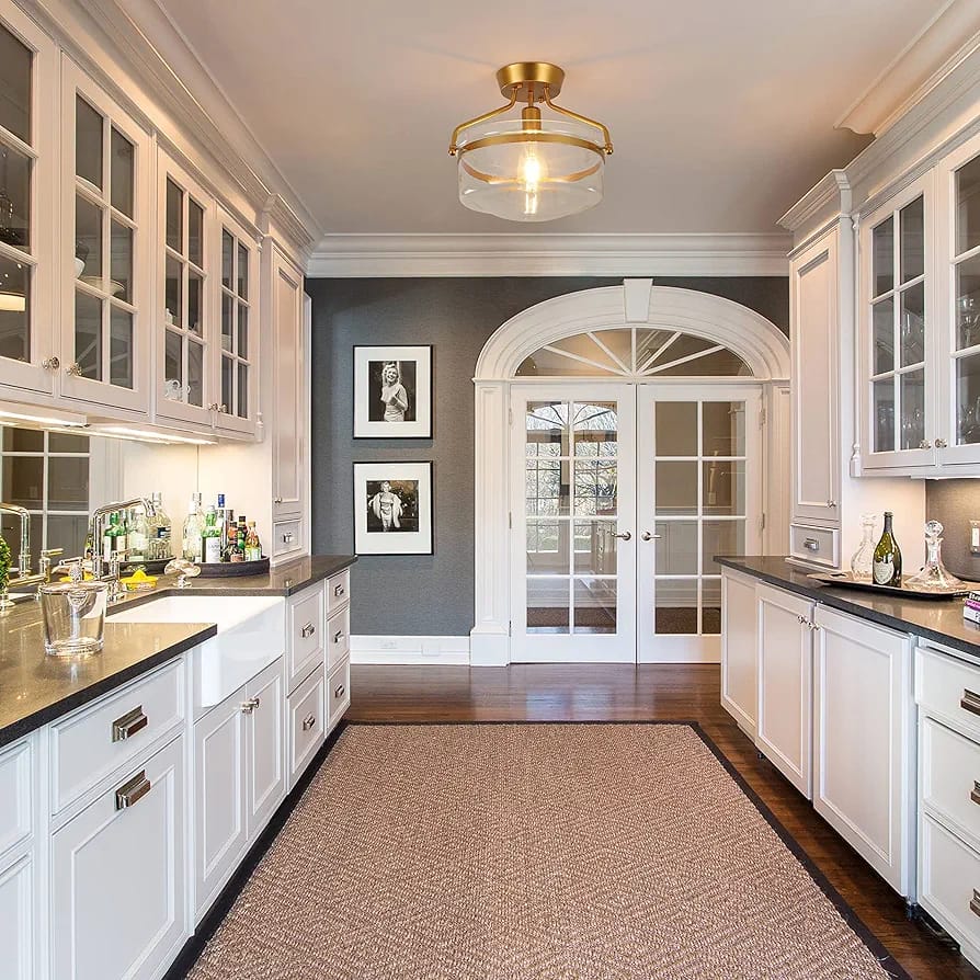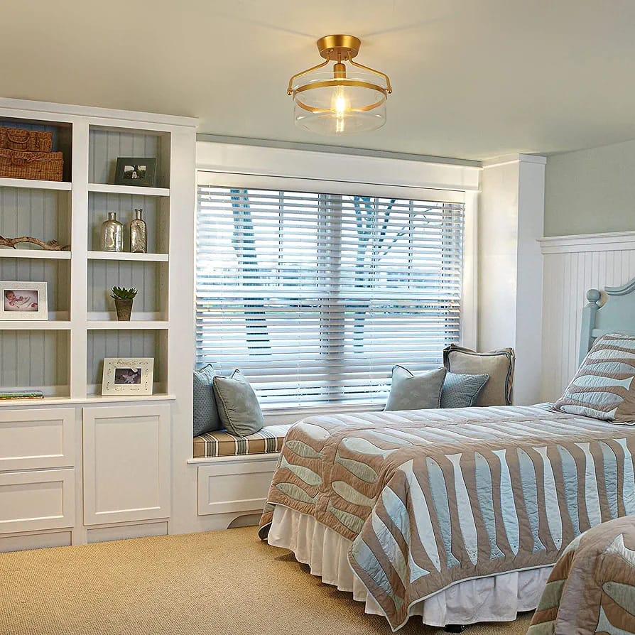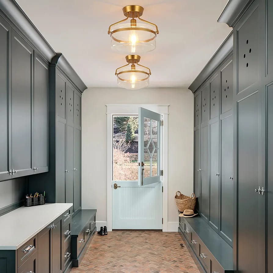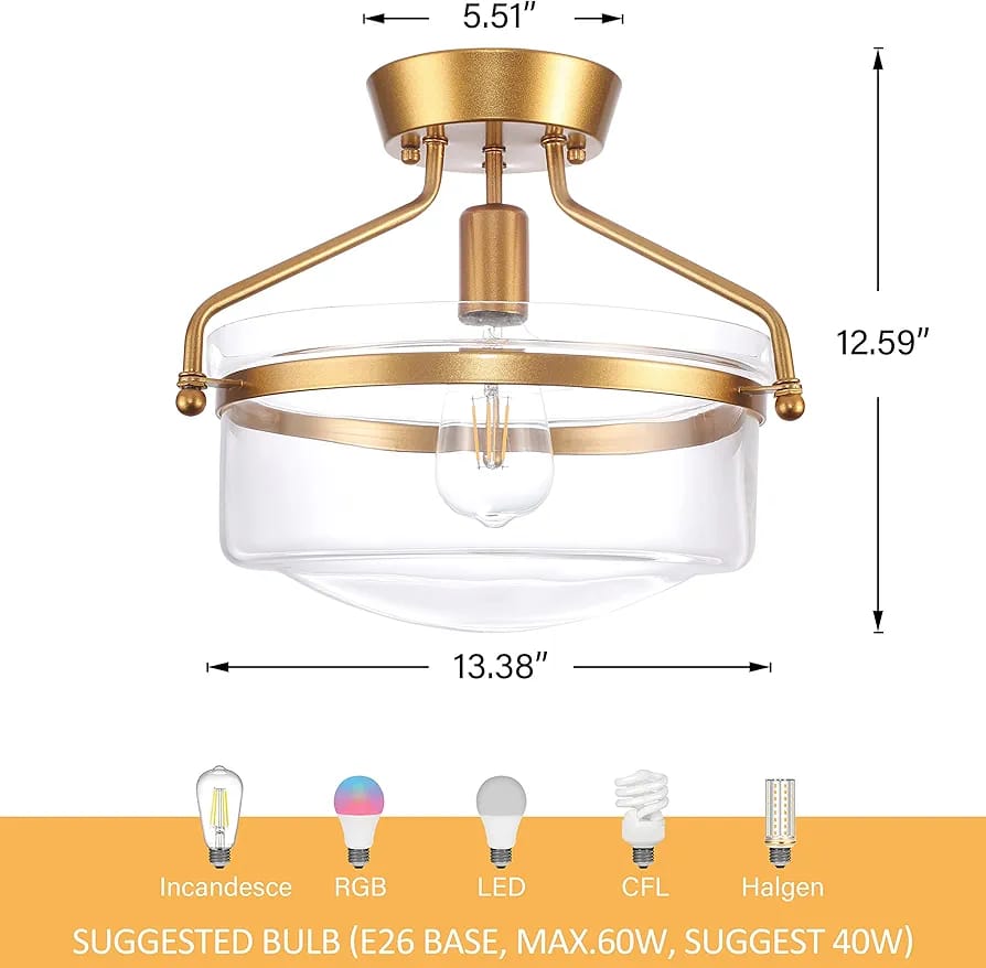 Lámpara de techo de montaje empotrado doradas, lámparas de techo de metal de 13.5 pulgadas, lámparas de techo de granja cerca del techo con vidrio transparente
