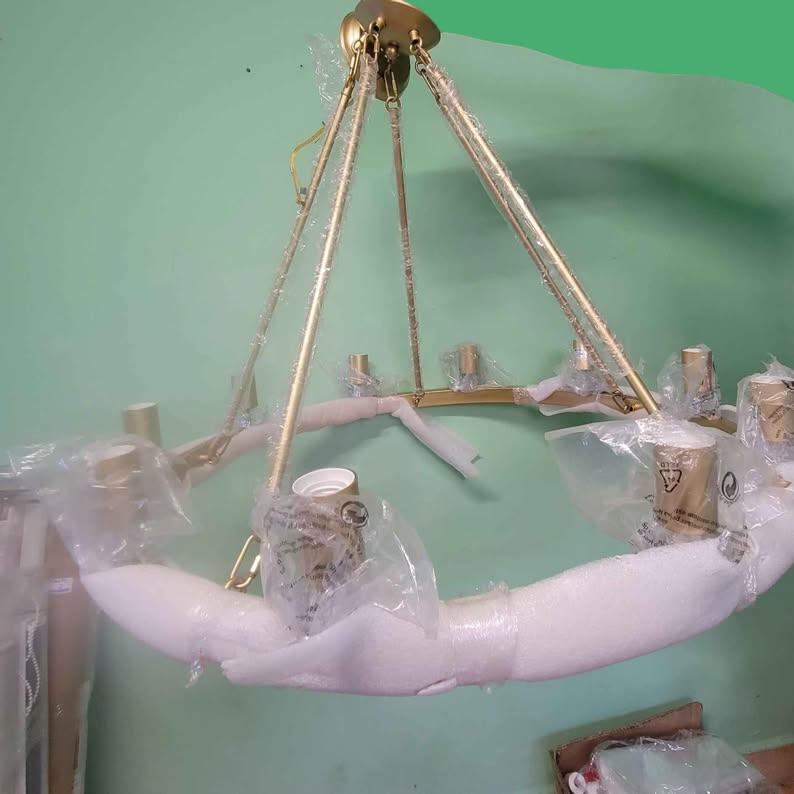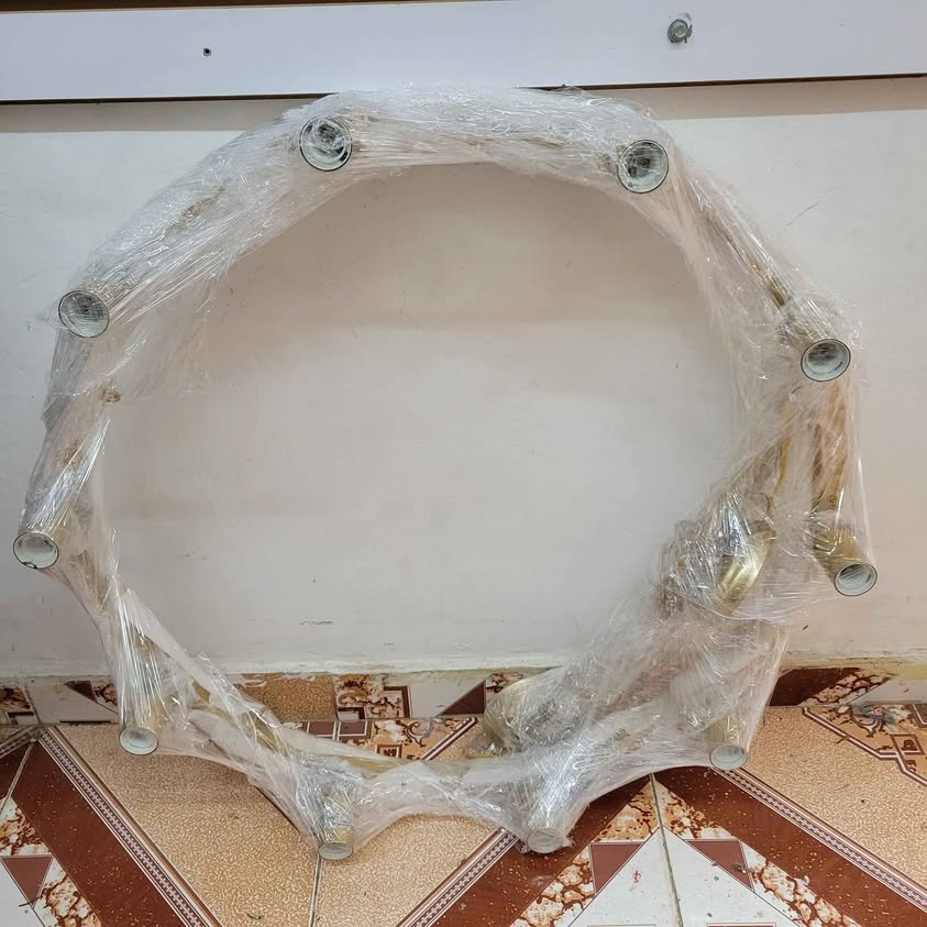 Lámpara de araña grande y moderna con rueda de carro, de metal dorado,...