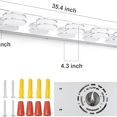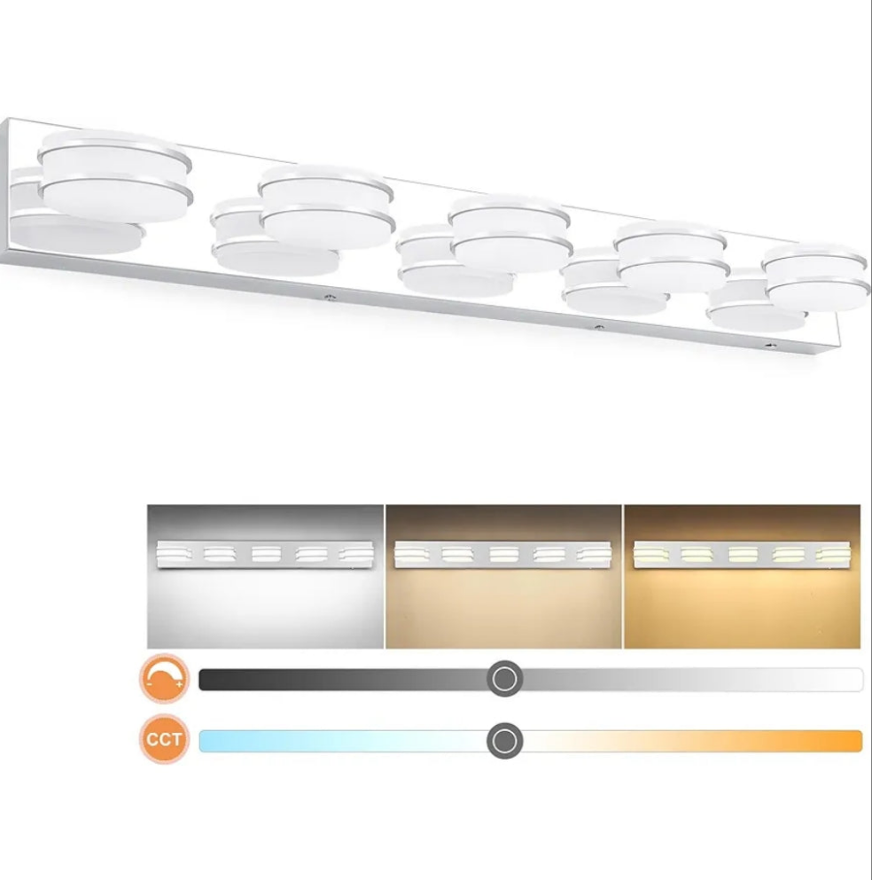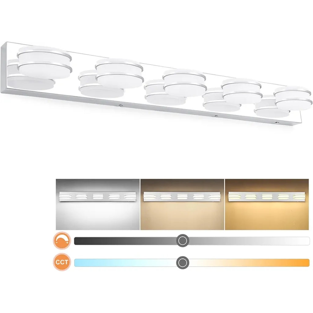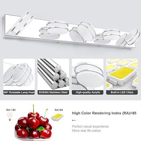 Lámparas LED cromadas de 3 colores regulables con 5 luces LED cromadas para tocador de baño, de acero inoxidable acrílico, pantalla ovalada, para baño, rotación de 360°, certificado ETL.