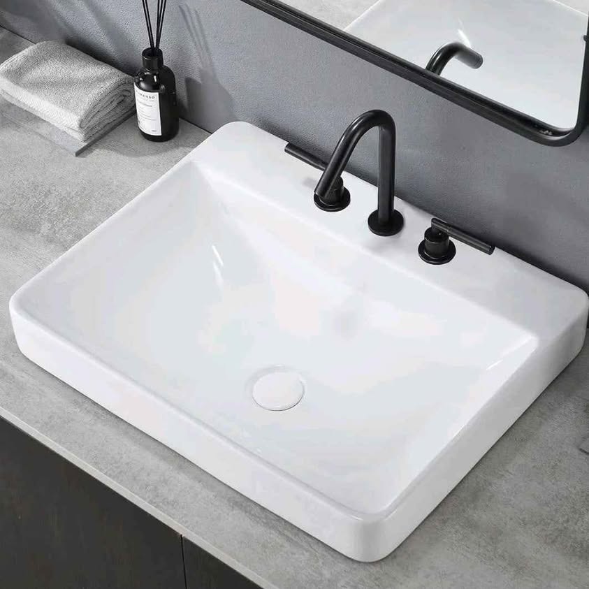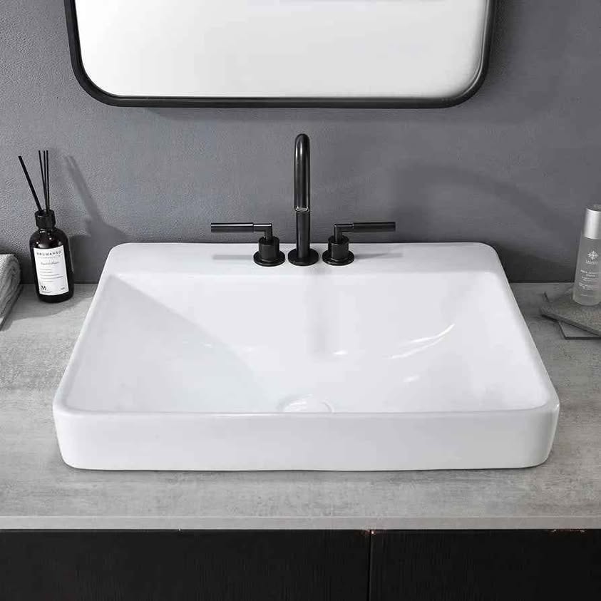 Lavamanos rectangular grande de cerámica de porcelana de 23 x 18 pulgadas, moderno lavabo sobre mostrador para armario de tocador.