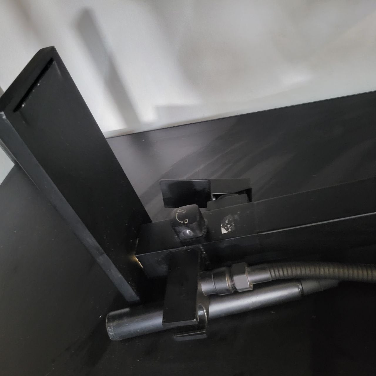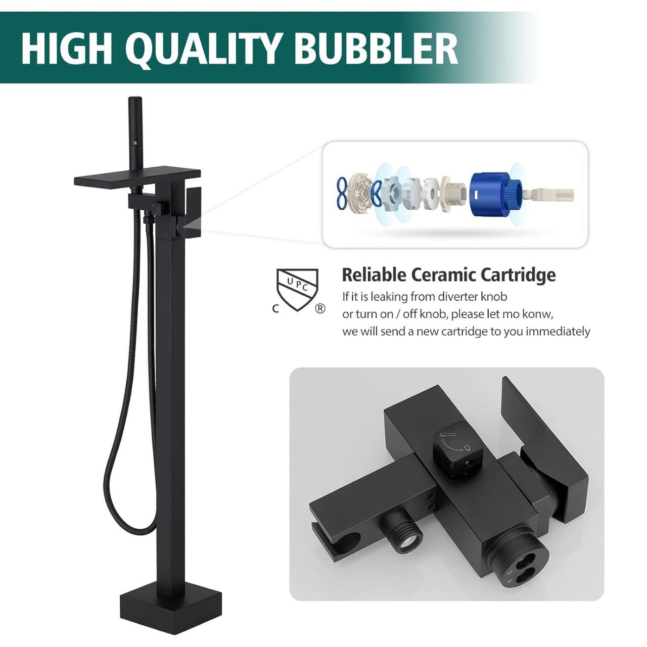 Hoimpro Llenador de bañera independiente grifo de bañera negro mate montaje en el suelo grifo de bañera de pie cascada de latón de alto flujo con rociador de mano