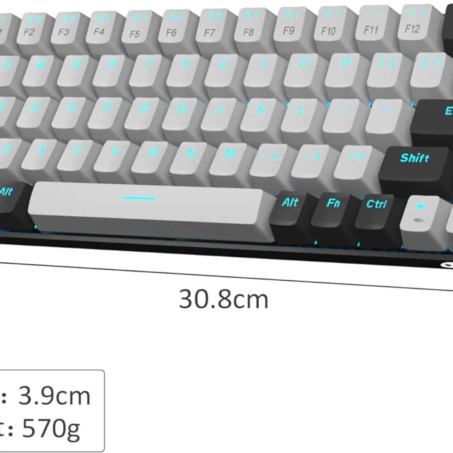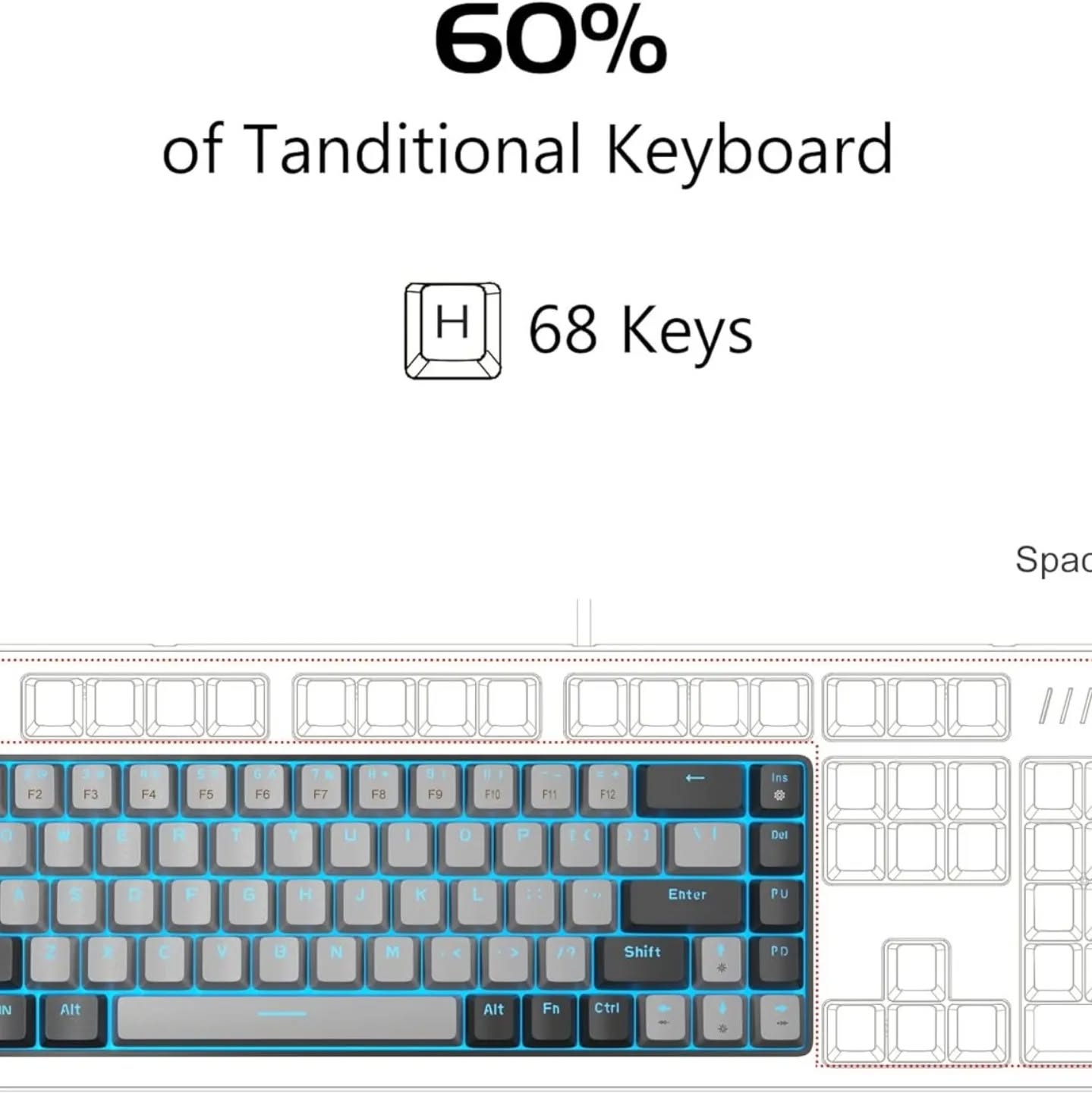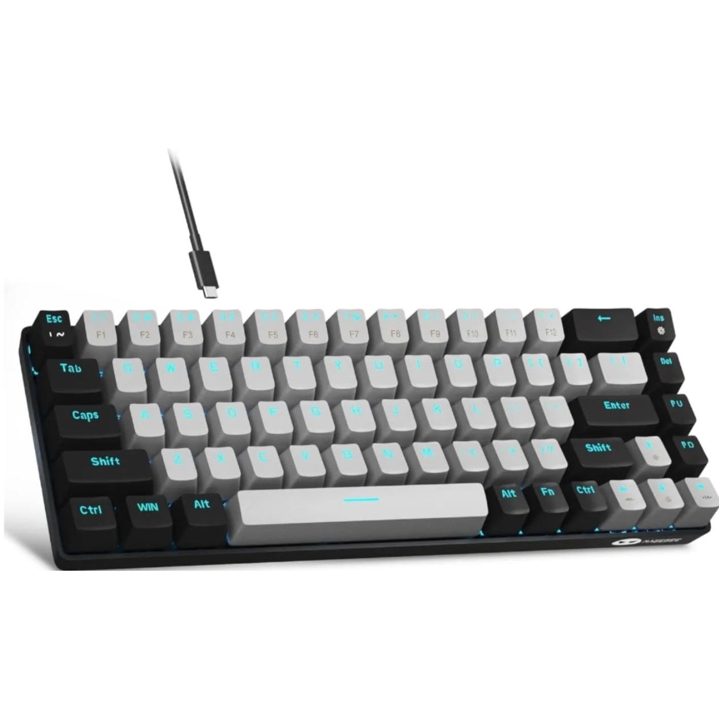 MageGee MK-Box - Teclado portátil 60% mecánico para juegos, retroiluminado LED, compacto, 68 teclas, mini teclado de oficina con cable con interruptor azul para Windows portátil, PC, Mac, gris/negro.