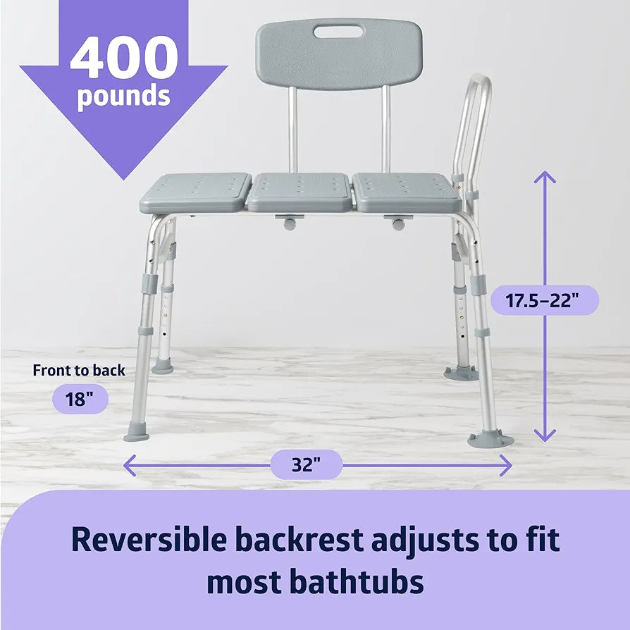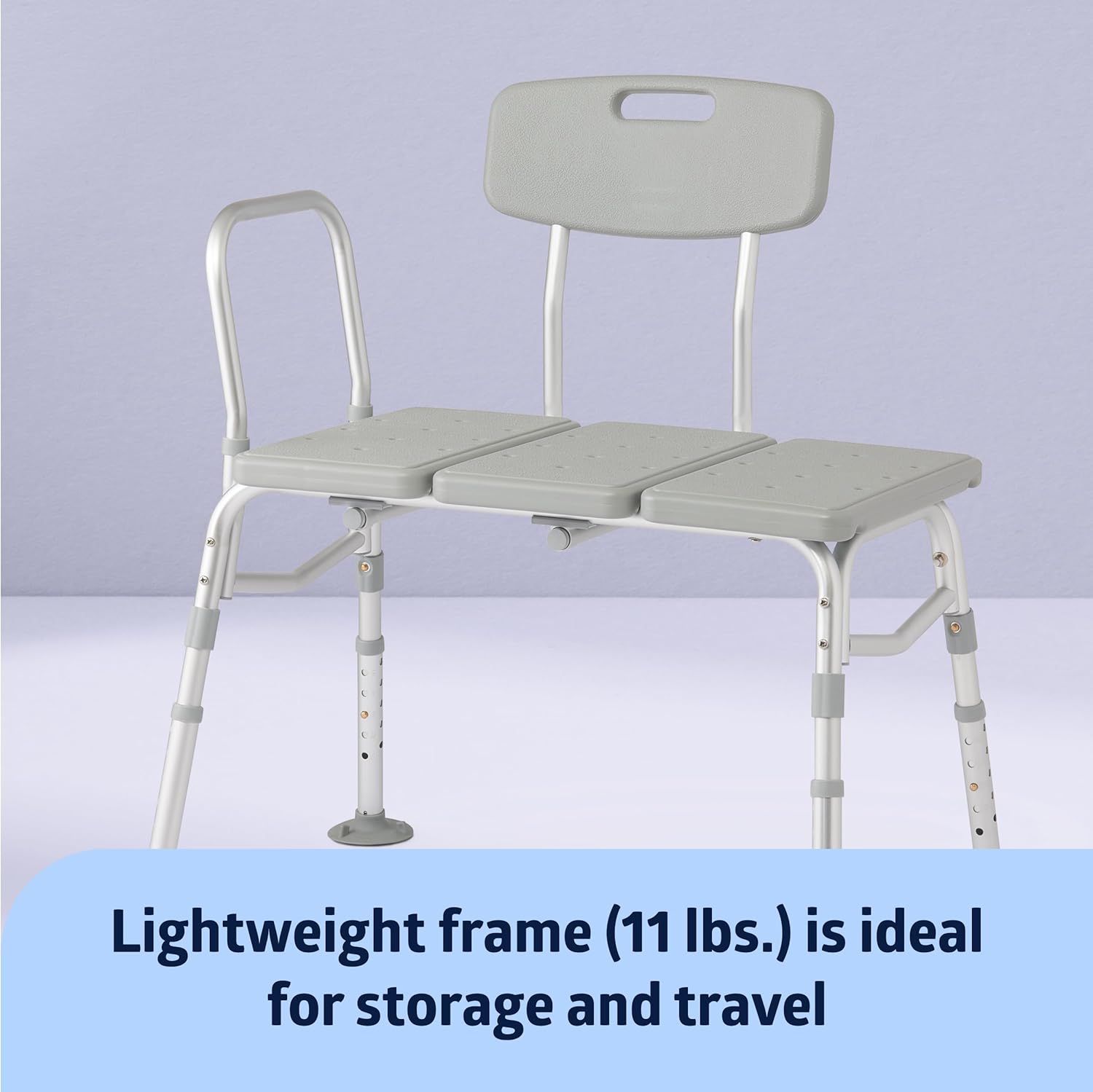 Medline - Banco de transferencia para tinas y duchas, banco de ducha ajustable y asiento de baño para personas mayores y adultos, pies antideslizantes, capacidad de peso de 400 libras