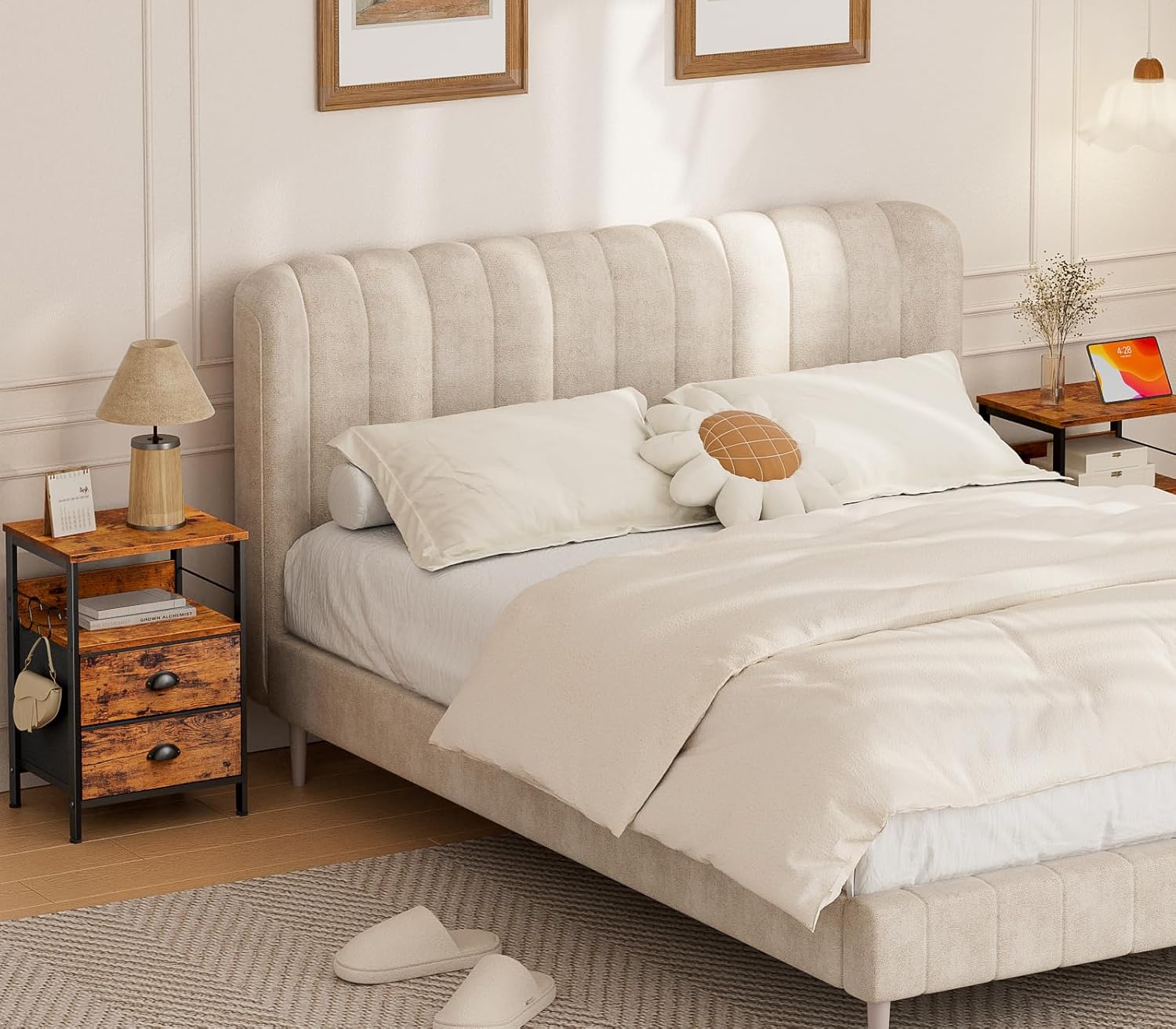 Mesita de noche Furologee con 2 cajones de tela, mesa auxiliar, mesa a...